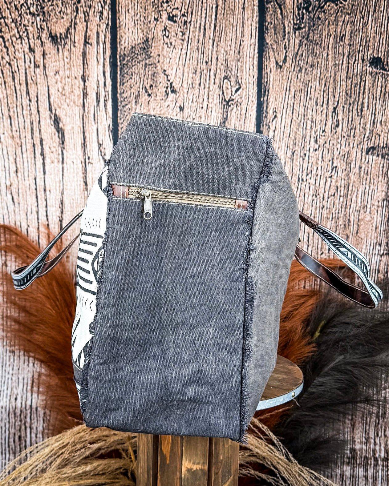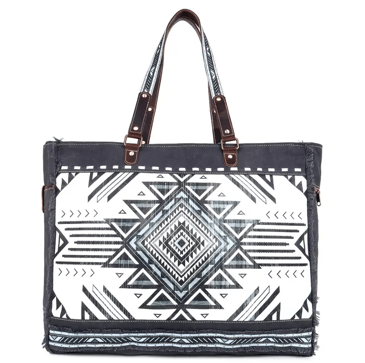 The bold black-and-white Aztec pattern brings those classic southwestern vibes into a fresh, modern silhouette. It’s eye-catching without being over the top, with a pattern inspired by desert landscapes, tribal textiles, and the kind of vintage prints that never go out of style. From rodeo weekends to everyday errands, this bag brings western soul to any setting.