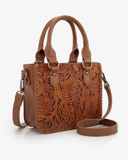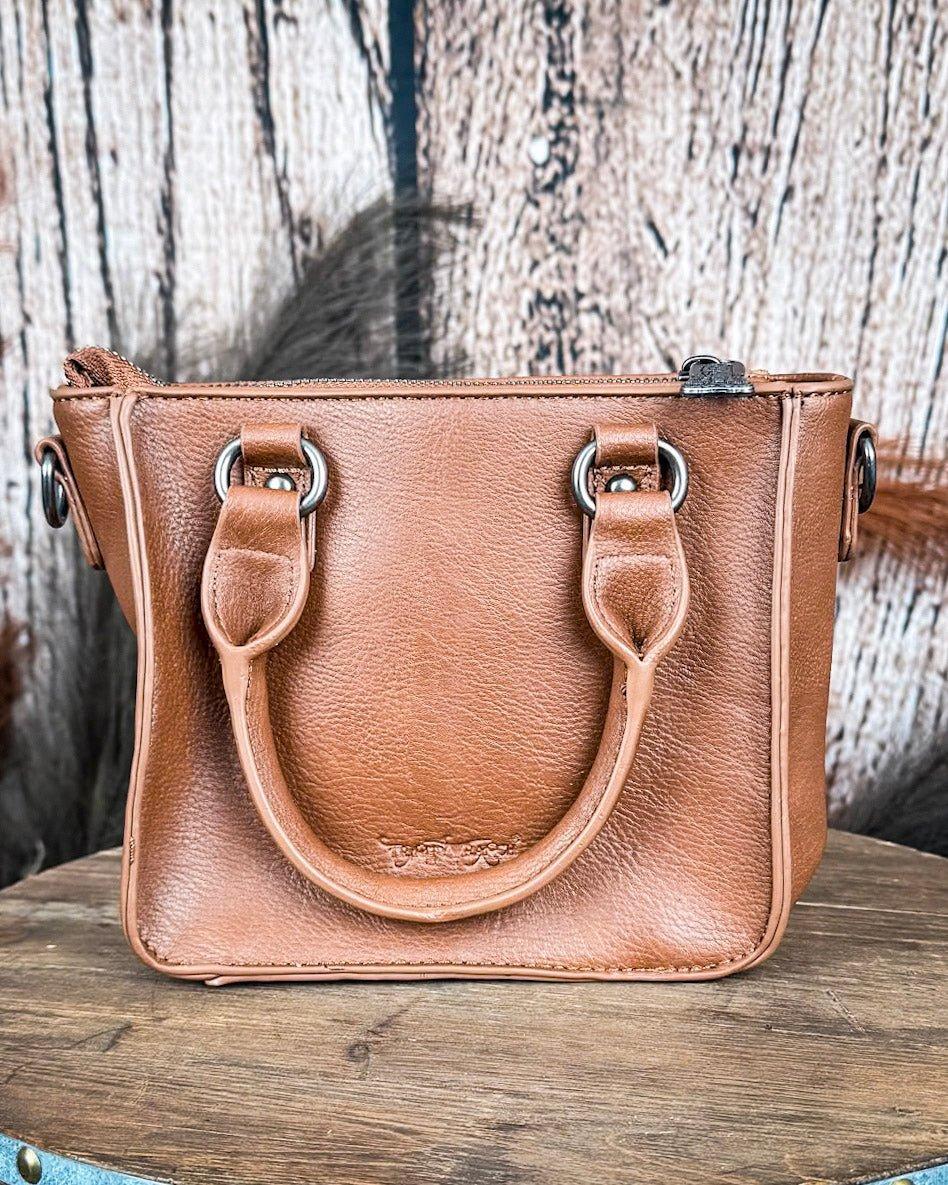 Canyon Blossom Tooled Mini Satchel in Brown by Trinity Ranch | Bronco Western Supply Co.