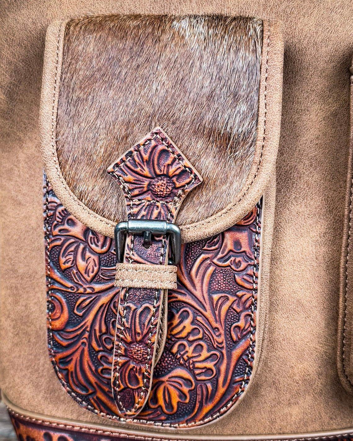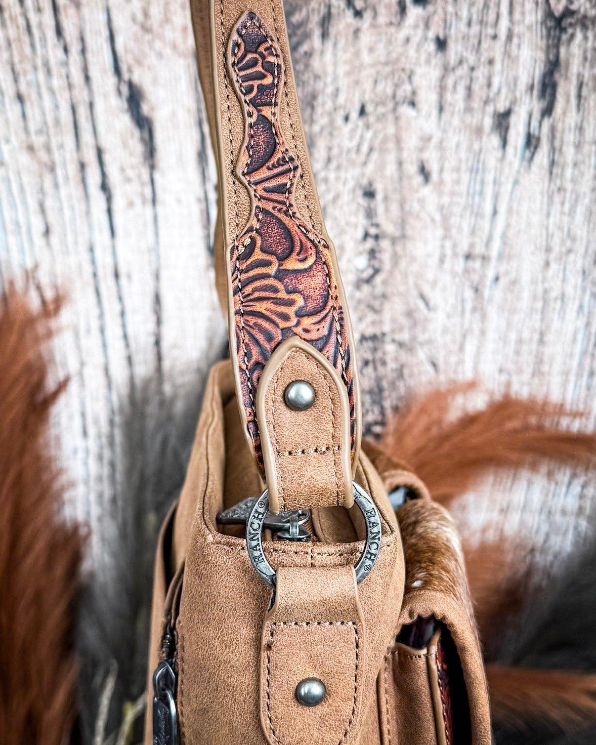 Desert Bloom Tooled Hairon Shoulder Bag in Brown by Trinity Ranch | Bronco Western Supply Co.