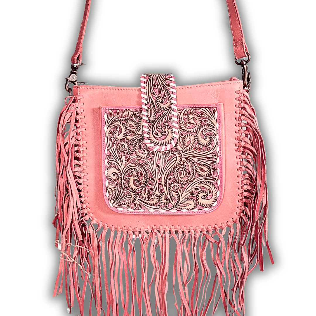 Sweet with a little sass, the Oro Valley Hand Tooled Bag in Pink is everything we love about western style wrapped up in one bold, feminine piece. With its intricate tooling, long fringe, and stand-out color, this beauty is built for the gals who aren’t afraid to show off their softer side—with a little edge.