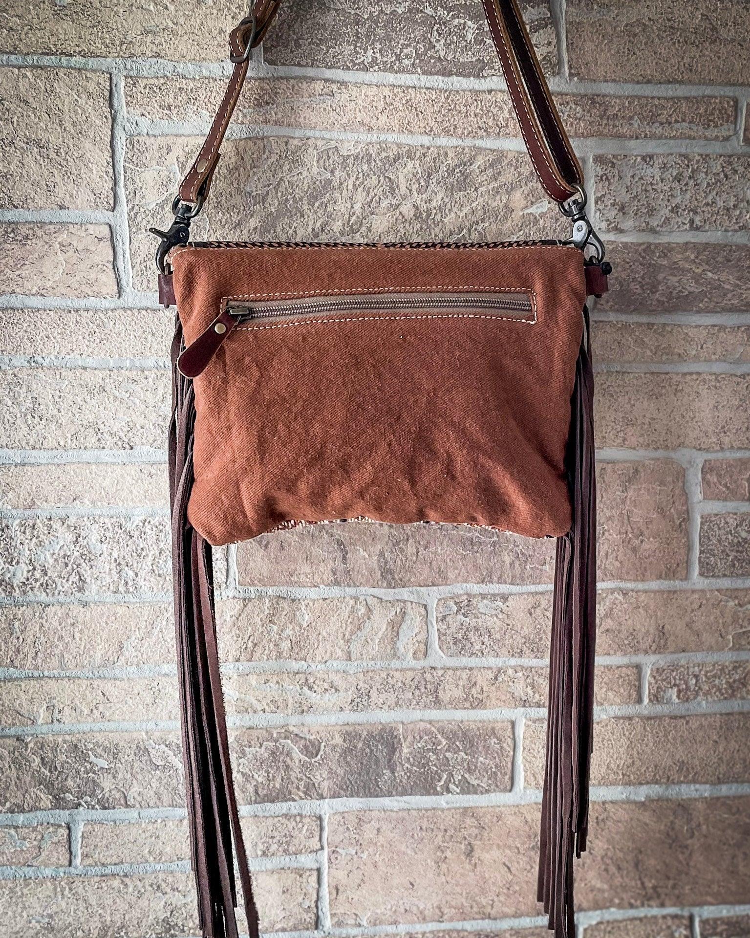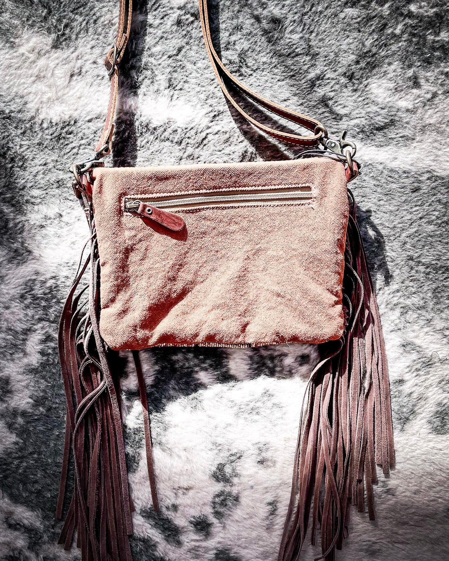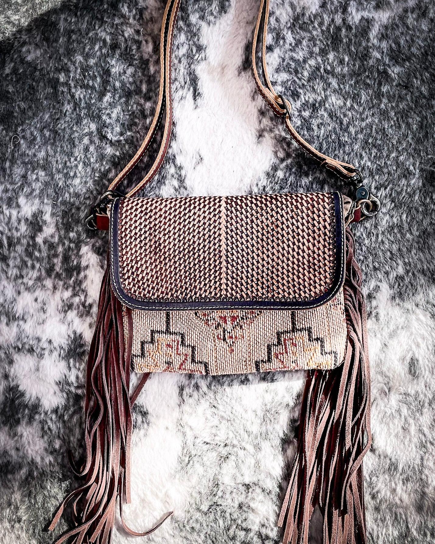 What sets this piece apart is its delicate balance of natural textures and strong visual design. Long, flowing fringe cascades from either side in a deep brown leather, creating gentle movement as you walk. The fringe adds just the right amount of Western flair, giving the bag a sense of freedom and spontaneity while remaining polished and intentional.