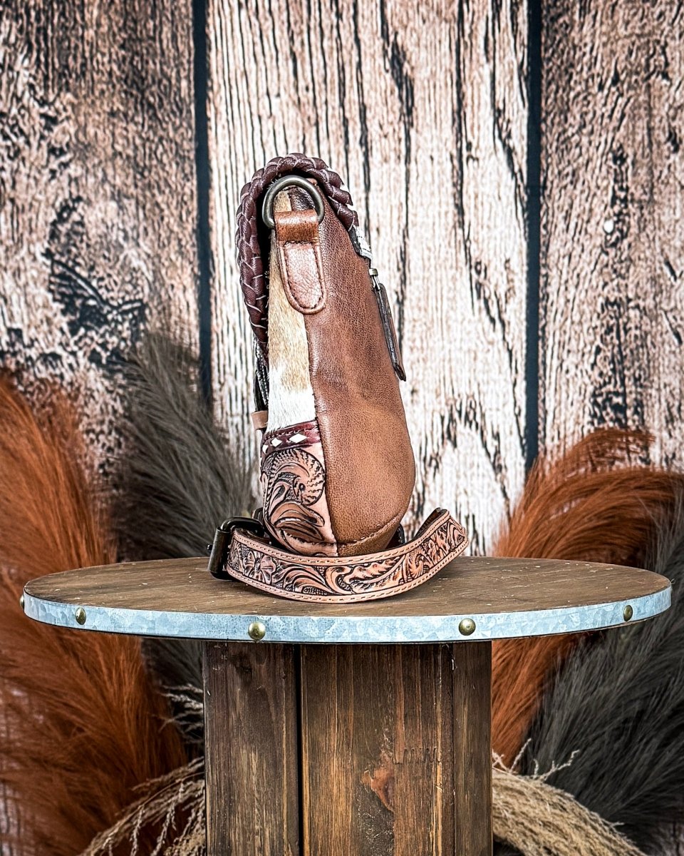 This is the kind of bag that makes an outfit feel finished without trying too hard. The Juniper Cowhide Crossbody Purse blends hand-tooled leather with natural hair-on cowhide for a look that feels elevated but still easy to wear. Each piece carries its own character thanks to the unique cowhide patterning, making no two bags exactly alike.