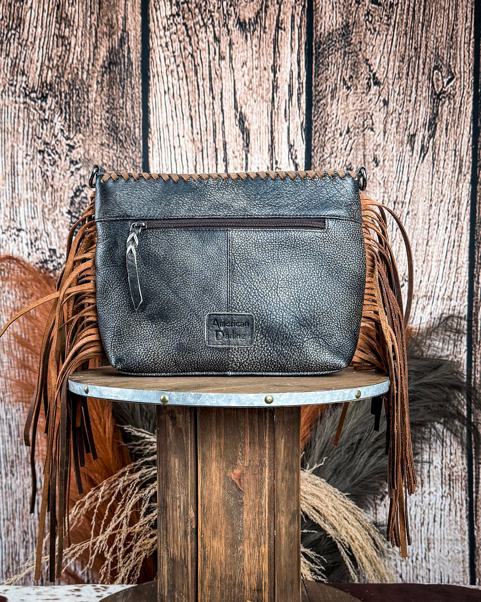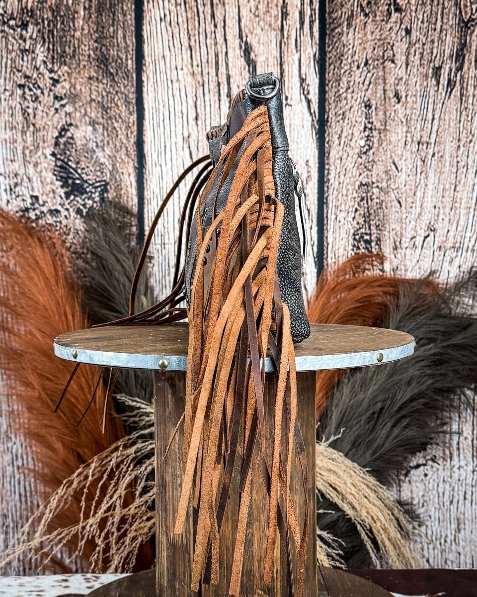 The fringe brings movement and attitude, while the structured design keeps everything in place. Whether you’re headed to a concert, market day, or just throwin’ it over your shoulder for everyday wear, it’s got that perfect mix of function and flair. And the leather? It’s eco-friendly, vegetable-tanned, and only gets better with time—softening up and aging like a favorite old saddle.