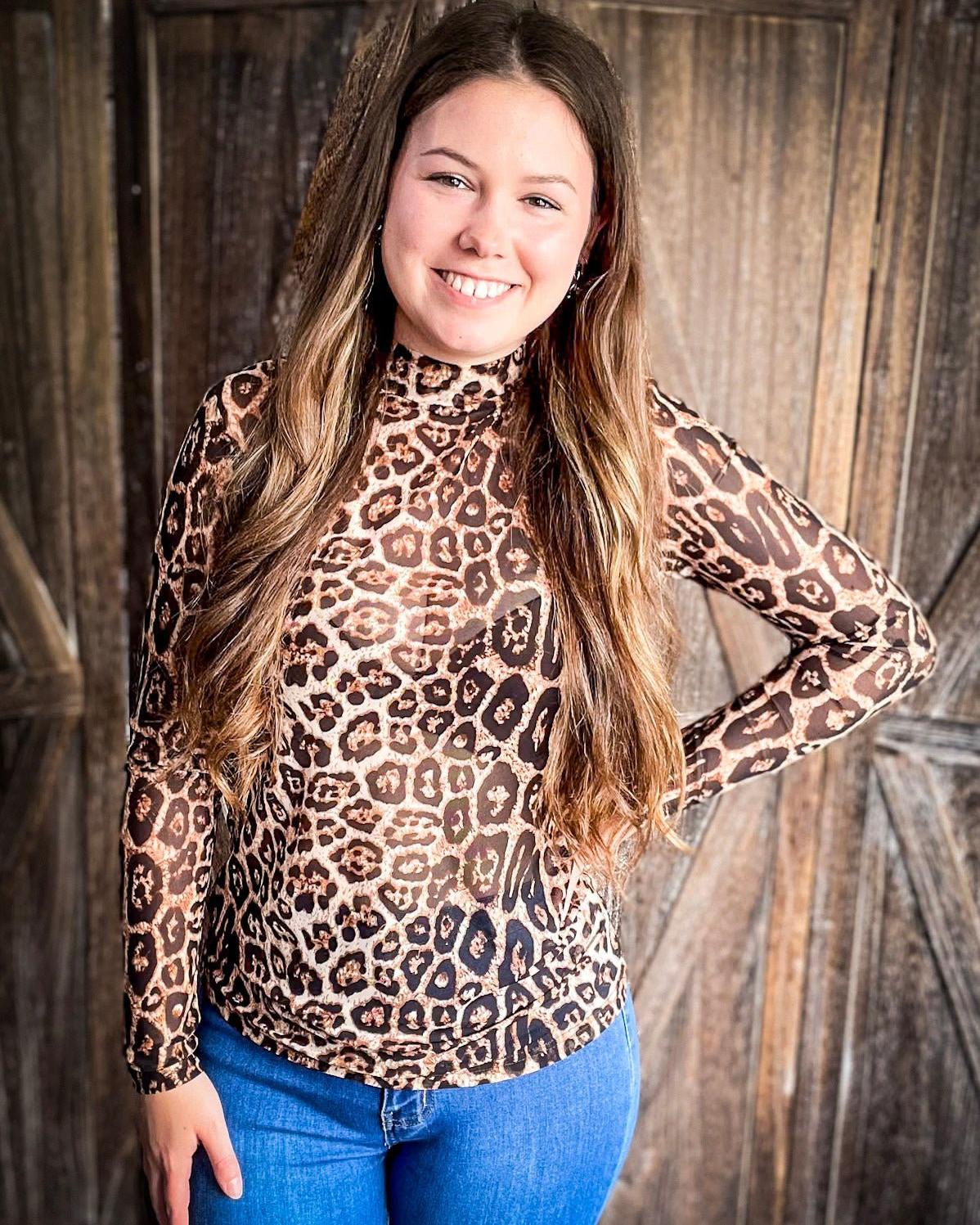 Fierce, fun, and impossible to ignore—the Hear Me Roar Mesh Top by Sterling Kreek is all about confidence. With its bold leopard print and body-hugging fit, this sheer long-sleeve top brings just the right amount of wild to your western wardrobe. Whether you’re layering it up or letting it shine on its own, this top adds instant edge to any outfit.