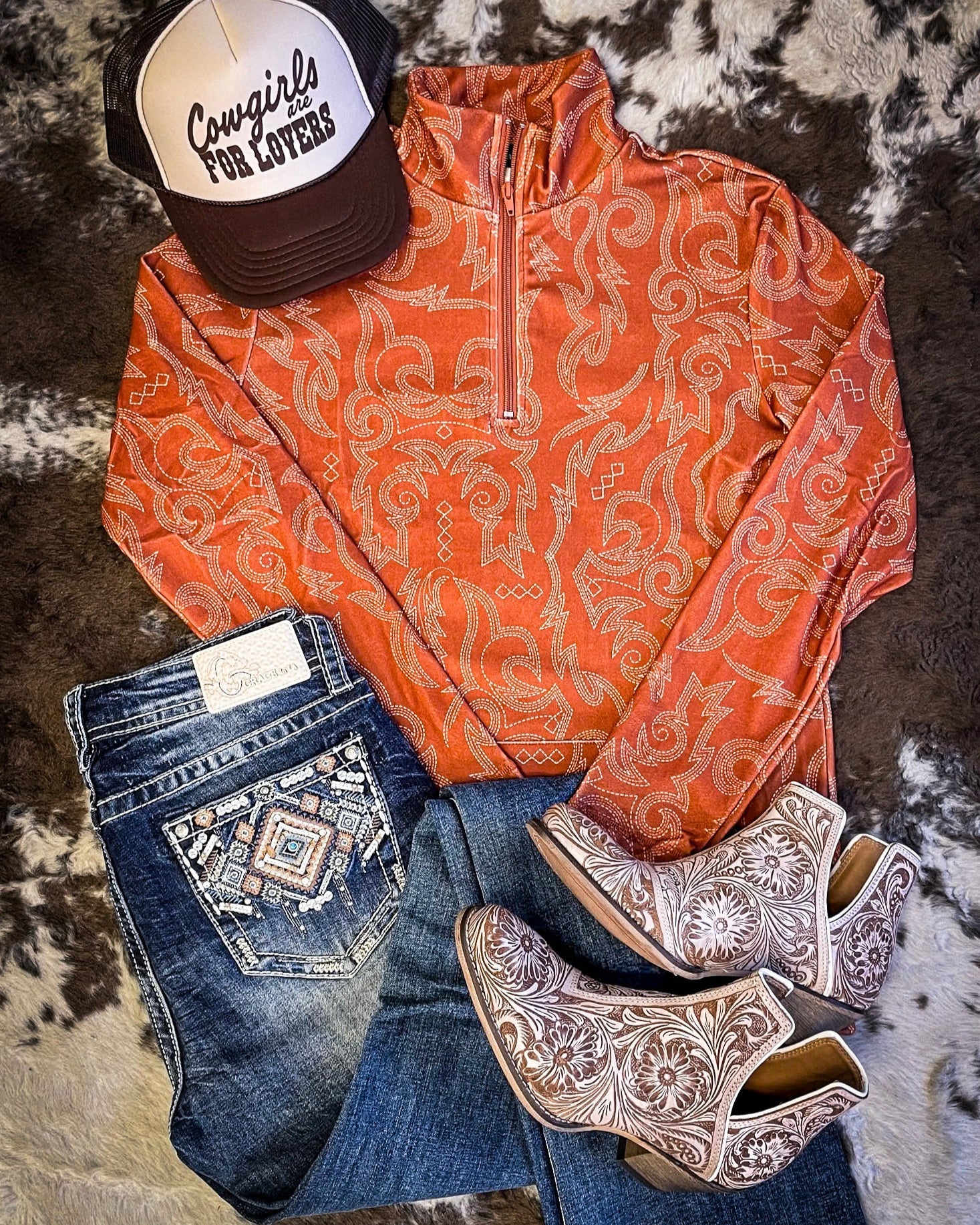 Whether you’re walking the dog, hitting a local market, or just enjoying a moment on the porch swing, this pullover brings both style and substance. It’s got just enough western influence to feel grounded, but still modern and easy to wear. No fuss, just a reliable go-to with a little kick of personality.