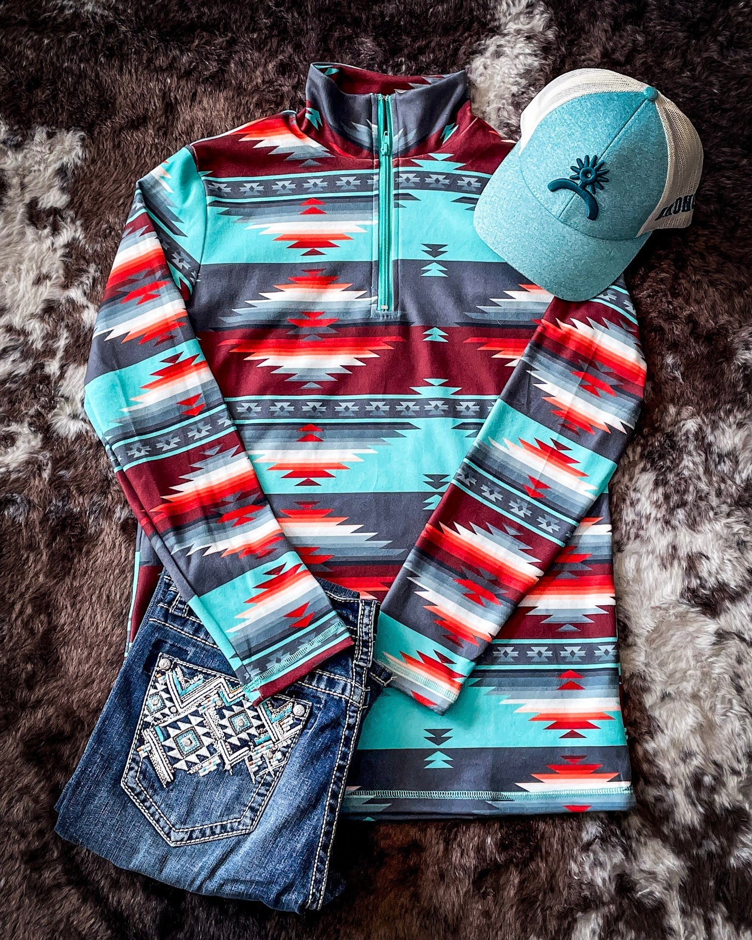 Some pieces come and go—but the Texas Rain Pullover? She’s a staple. Back by popular demand and loved season after season, this fan favorite brings the heat with bold colors, unbeatable comfort, and that western flair we just can’t quit.