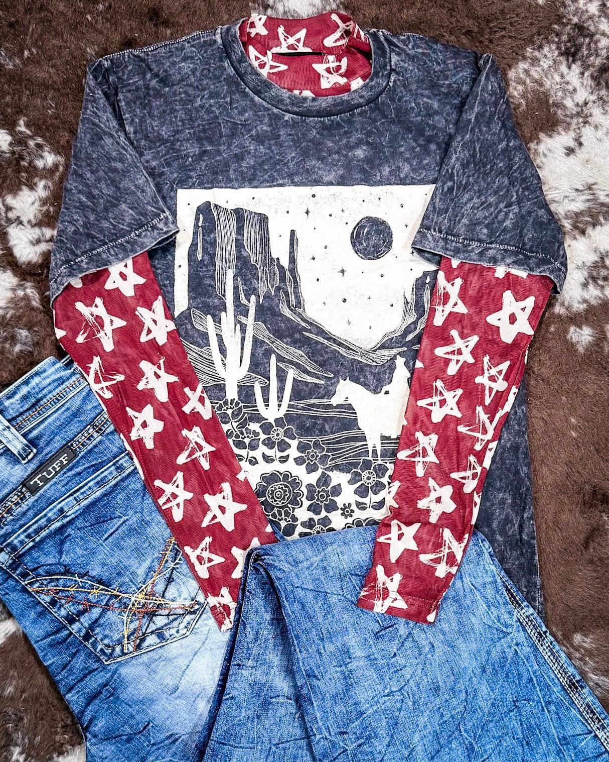 Perfect for adding a modern western edge to your wardrobe, the Stars At Night Red Top is a must-have for fashion lovers who appreciate bold prints, sheer fabrics, and effortless versatility. Whether you're embracing your inner cowgirl or simply looking for a standout statement piece, this top will quickly become a favorite go-to for any occasion.