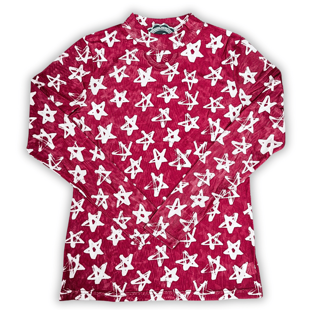 Add a bold and edgy twist to your wardrobe with the Stars At Night Red Top, a statement piece that perfectly blends rustic charm with modern western fashion. Designed for those who love to stand out, this striking long-sleeve mesh top features a deep, rustic red hue that exudes confidence and individuality. The sheer fabric is adorned with white stars that appear hand-painted, giving it an artistic and slightly vintage feel, perfect for adding personality to any outfit. Whether you're headed to a casual daytime event or a lively night out, this top ensures you’ll turn heads with its unique and playful design.