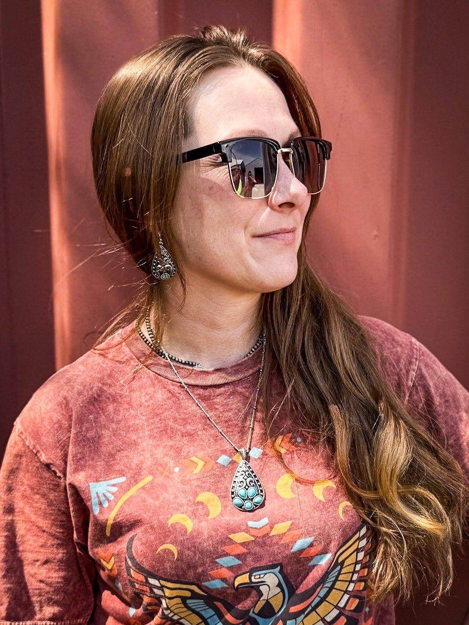Meet your new go-to for everyday cool: Austin, a retro-inspired pair of shades with a fresh, modern feel. These wayfarer-style sunglasses channel vintage vibes in the best way—bold shape, timeless design, and just enough edge to make a statement. Whether you're heading to the barn, brunch, or just driving with the windows down and your favorite playlist up, the Austin sunglasses are ready for it all.