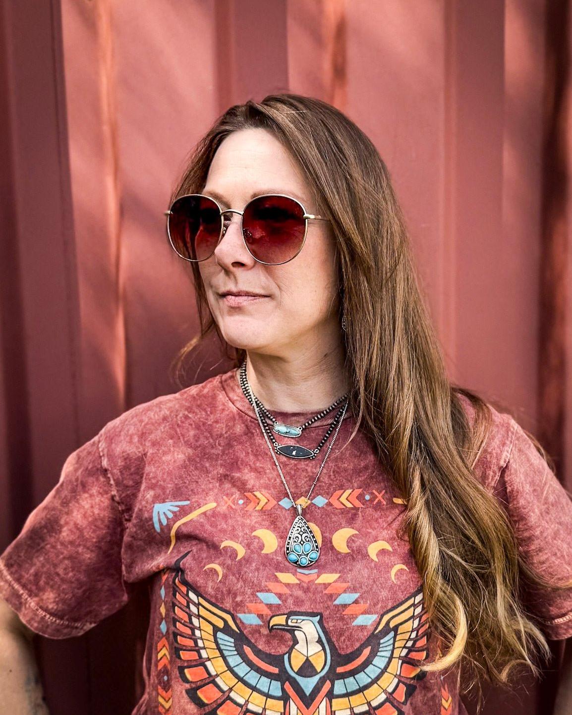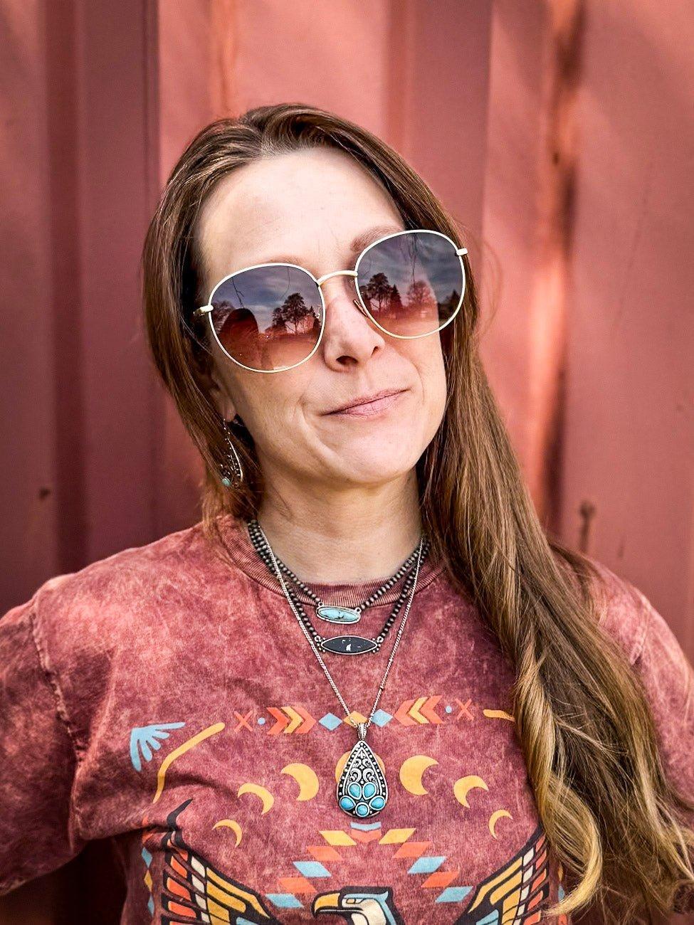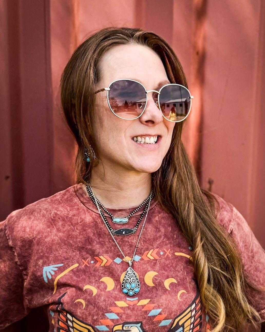 Say hello to Georgie—a fresh, polished take on the classic round frame. With a sleek gold metal structure and smooth, oversized lenses, Georgie adds instant sophistication to any outfit—without ever feeling stuffy or overdone. Whether you’re heading to brunch with the girls, catching golden hour after a long day at the barn, or just needing a little lift to your everyday look, these sunnies have your back (and your eyes).