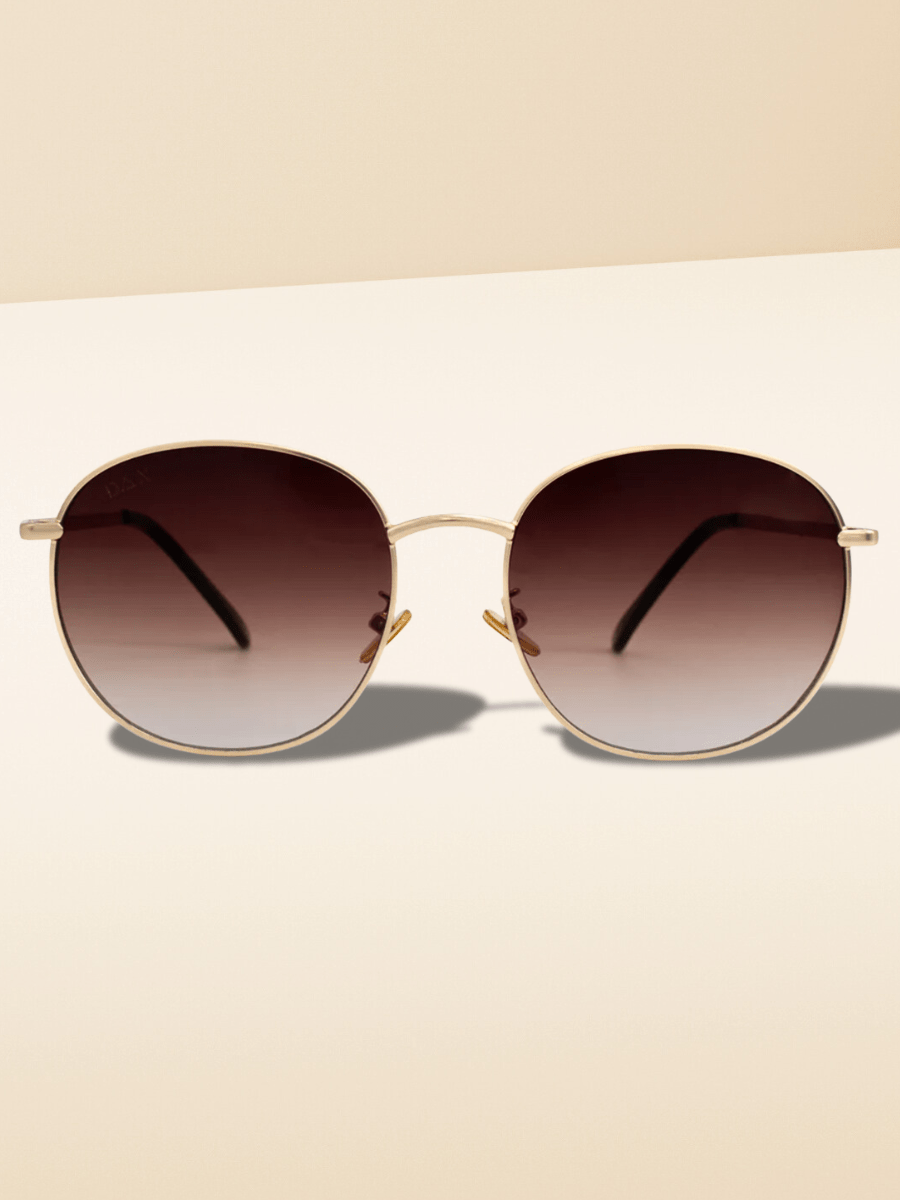 Brown Gradient: Gold frame with soft brown gradient lenses. A little warmer, a little softer, and totally effortless for daytime wear.