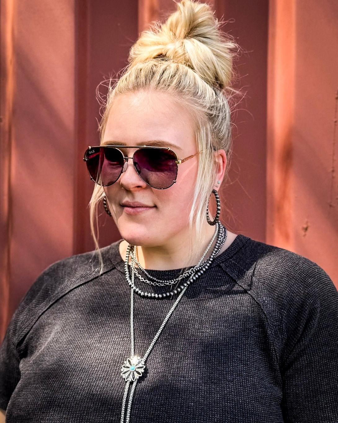 Classic, confident, and a little bit daring—Shay is your go-to aviator when you want that “I woke up cool” kind of energy. With a sleek metal frame, lightweight fit, and polarized lenses, these sunglasses blend timeless design with a modern edge. Whether you’re brunching, cruising, or hitting the feed store in style, Shay has your back (and your eyes) in every kind of light.