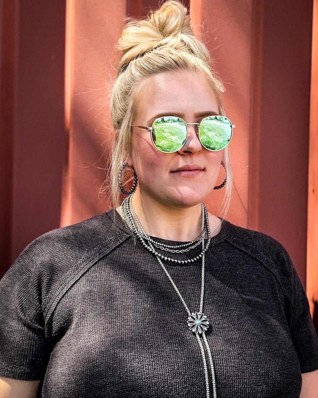 From the bold mirrored lenses to the sleek gold metal frame, Tru brings a punch of color and confidence to your everyday look. Whether you’re grabbing a coffee after morning chores or heading to a backyard BBQ, Tru’s got the energy to match whatever vibe you’re feelin’.