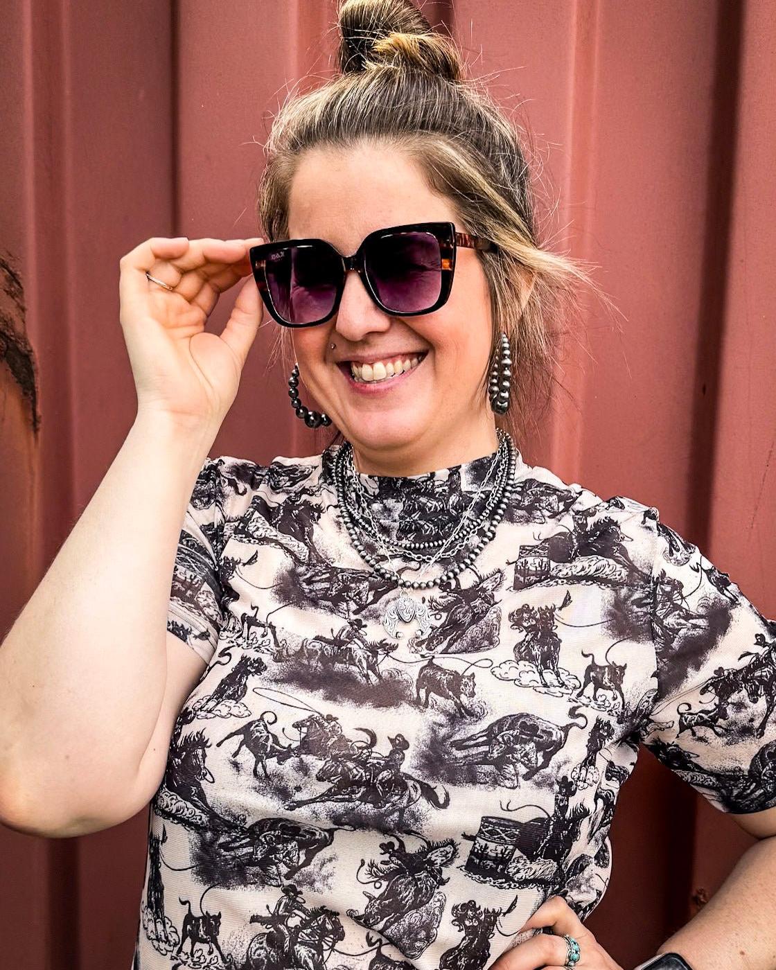 This is the pair you keep in the truck, toss in your purse, and wear from early morning chores to happy hour on the patio. The silhouette is sleek and balanced—small enough to feel tailored, but with enough edge to give your everyday wardrobe a little extra polish. Think vintage vibes meets modern minimalism.