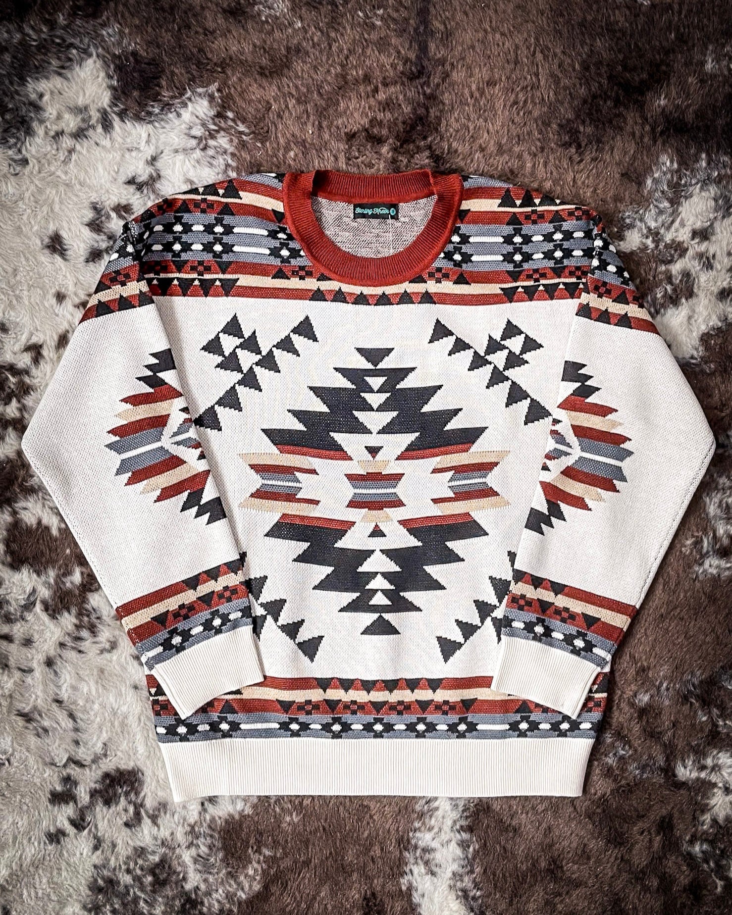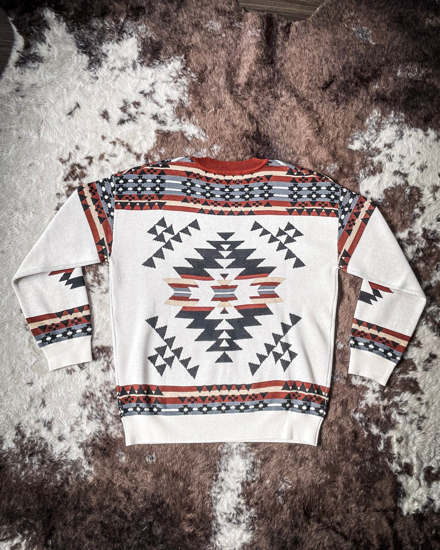 • The Lean On Me Knit Sweater by Sterling Kreek is that perfect mix of comfort and statement style. Featuring a bold Aztec-inspired pattern in shades of black, rust, and cream, it’s an easy way to bring Western flair into your everyday outfits. The soft knit has just the right amount of stretch, making it cozy enough for lounging yet polished enough to wear out on the town.