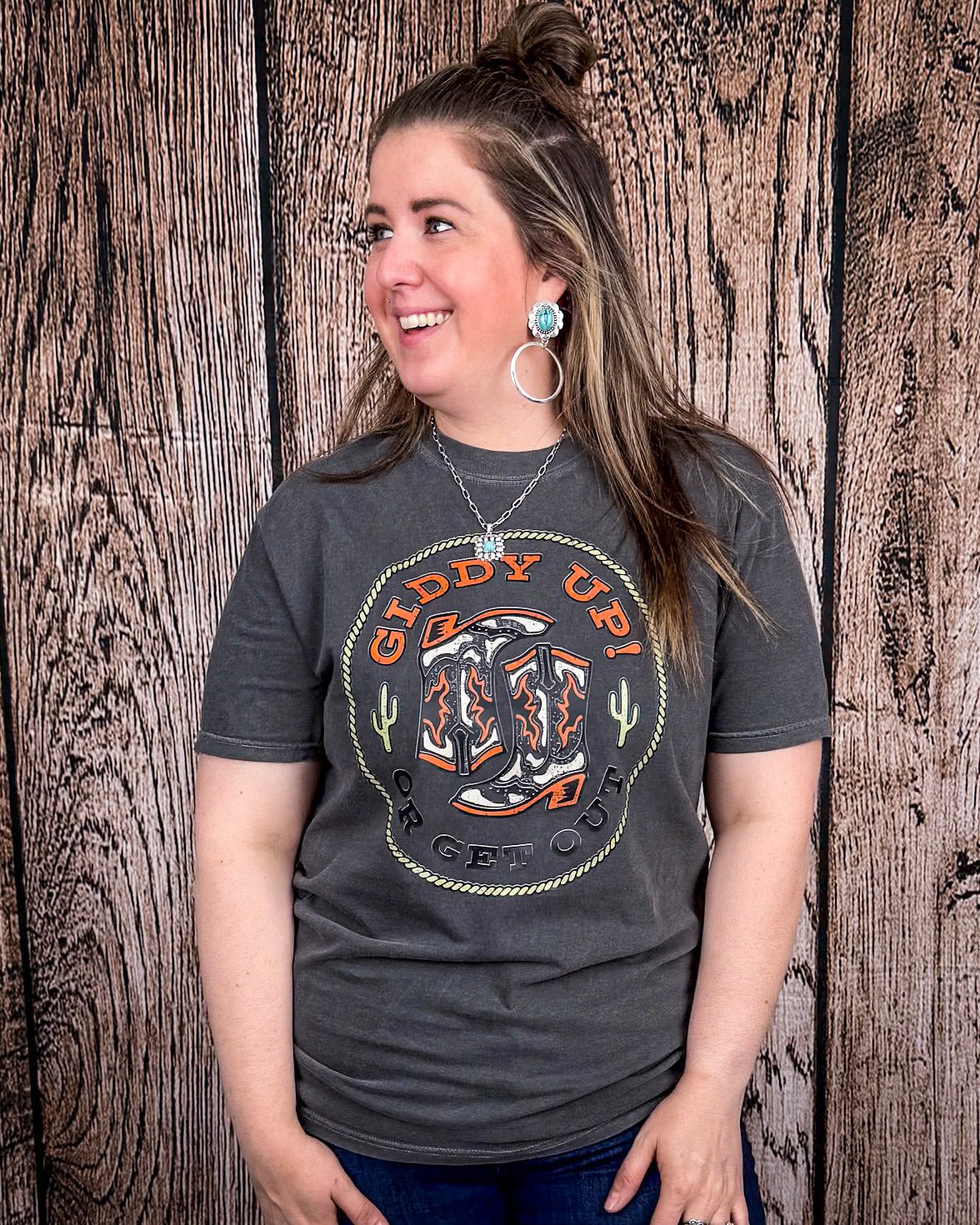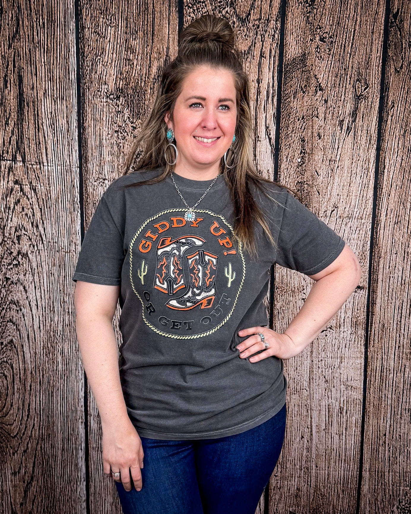Giddy Up or Get Out Graphic Tee - Pepper | Bronco Western Supply Co.