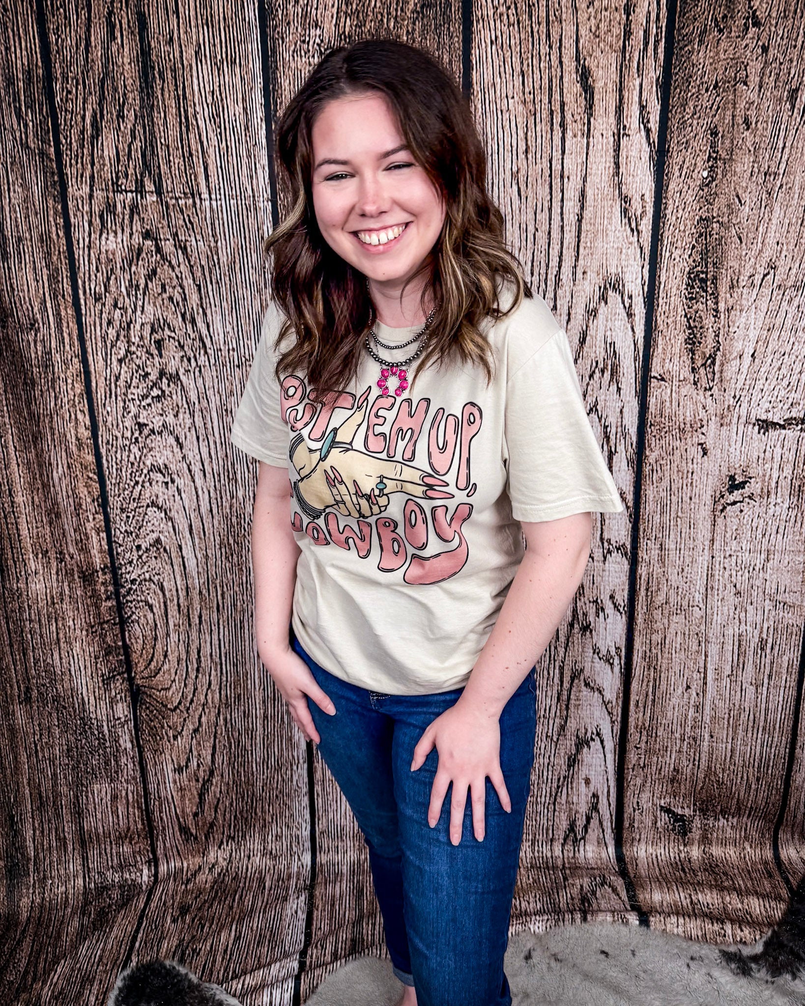 This tee doesn’t whisper—it talks back. The Put 'Em Up Graphic Tee brings the kind of punchy western energy that turns heads and sparks conversation. With a playful design that feels both retro and right-now, it’s made for the bold-hearted and quick-witted. The ones who know how to make a statement without sayin’ a word.