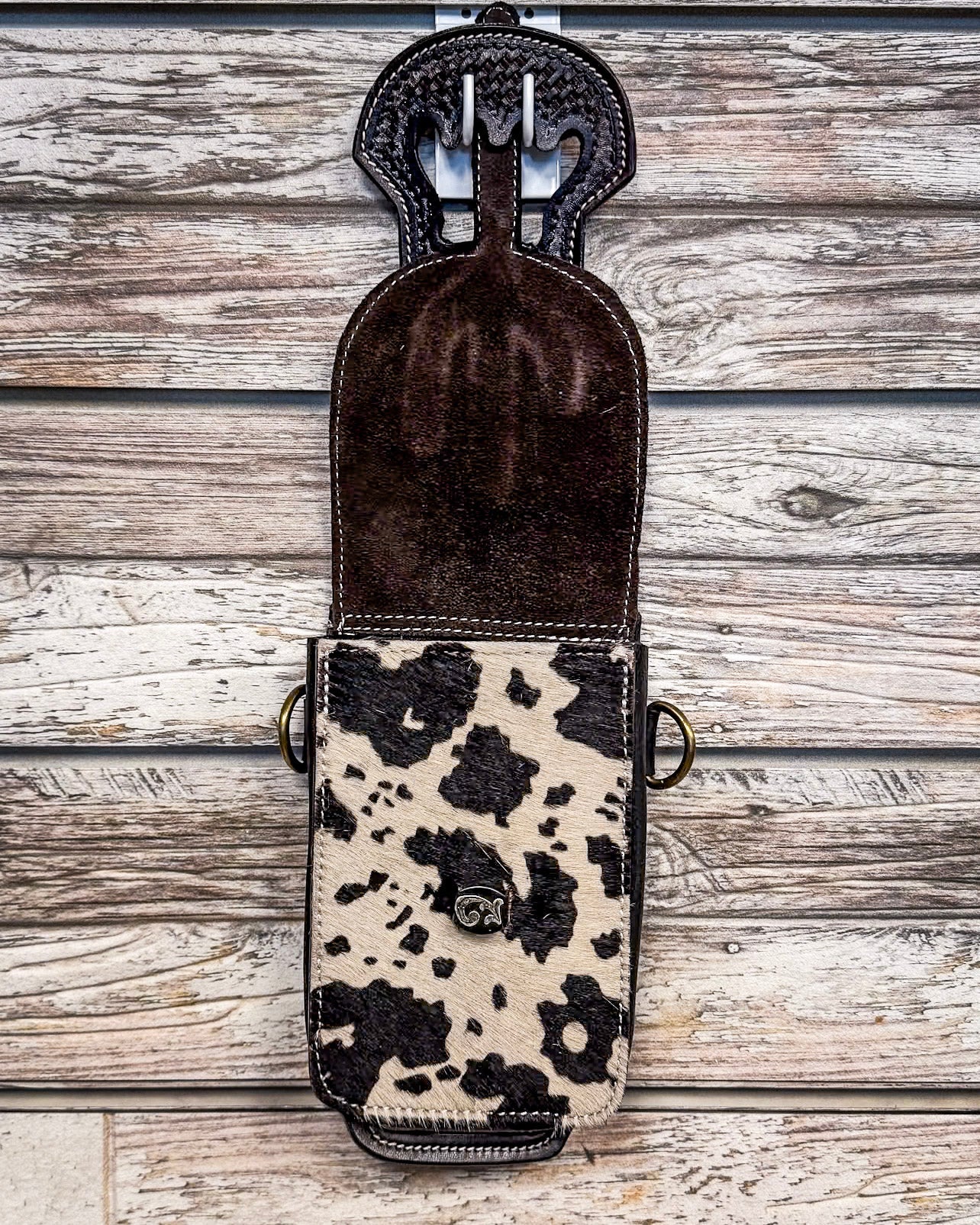 Crafted with both function and Western flair, the Silver Royal Leather Rear Cinch/Horn Bag is the perfect trail companion. Designed to attach securely to your rear billet, this compact saddle bag can also double as a horn bag for versatile use. The hair-on body pairs beautifully with a tooled leather flap featuring an intricate cactus motif.