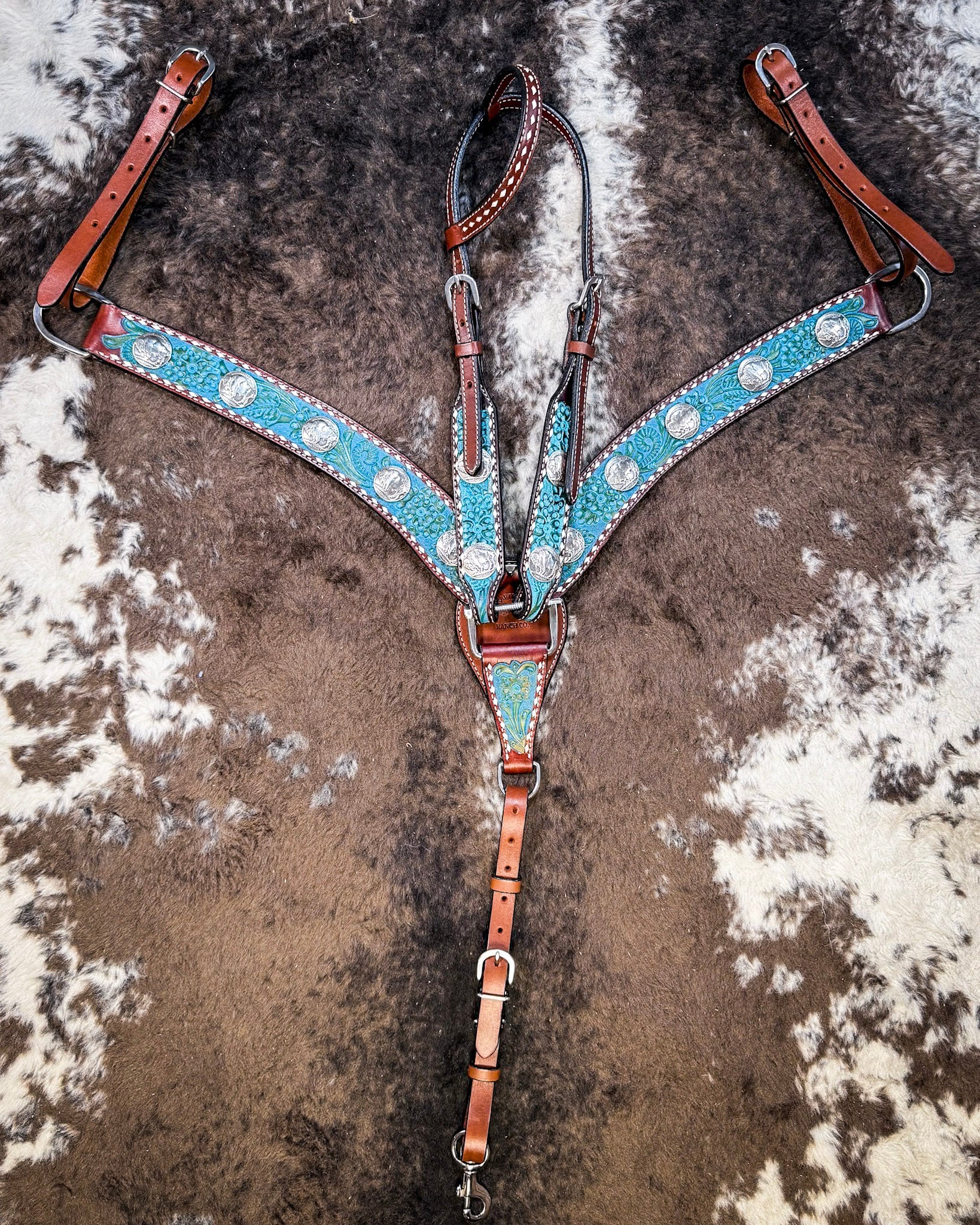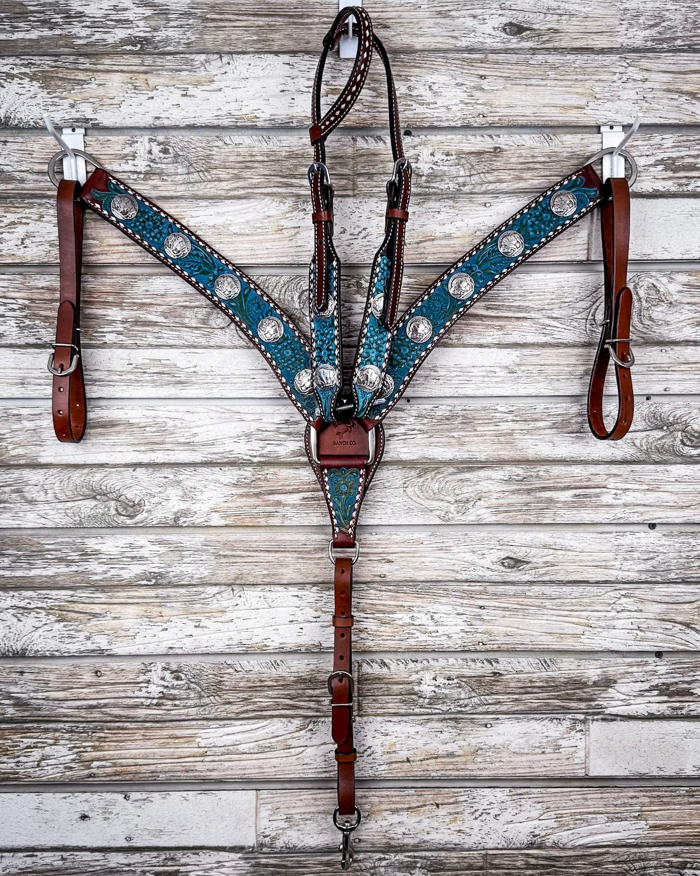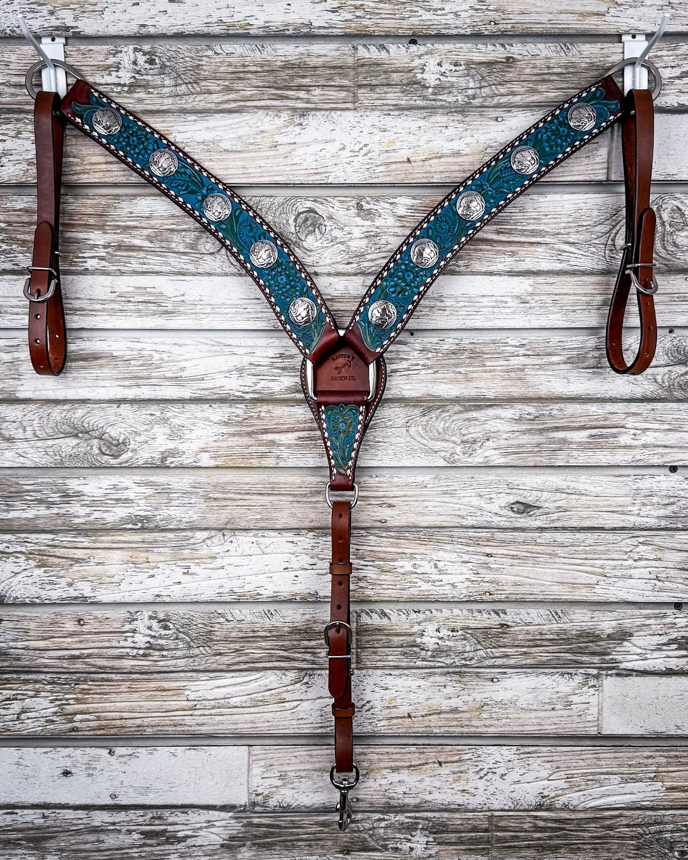 Simple, striking, and built with purpose, the Turquoise Wash Bull Coin tack set brings a little extra style to your ride without ever compromising on quality. Designed by Rafter T Ranch Co., it’s made for those who want their gear to work hard and look dang good doin’ it.