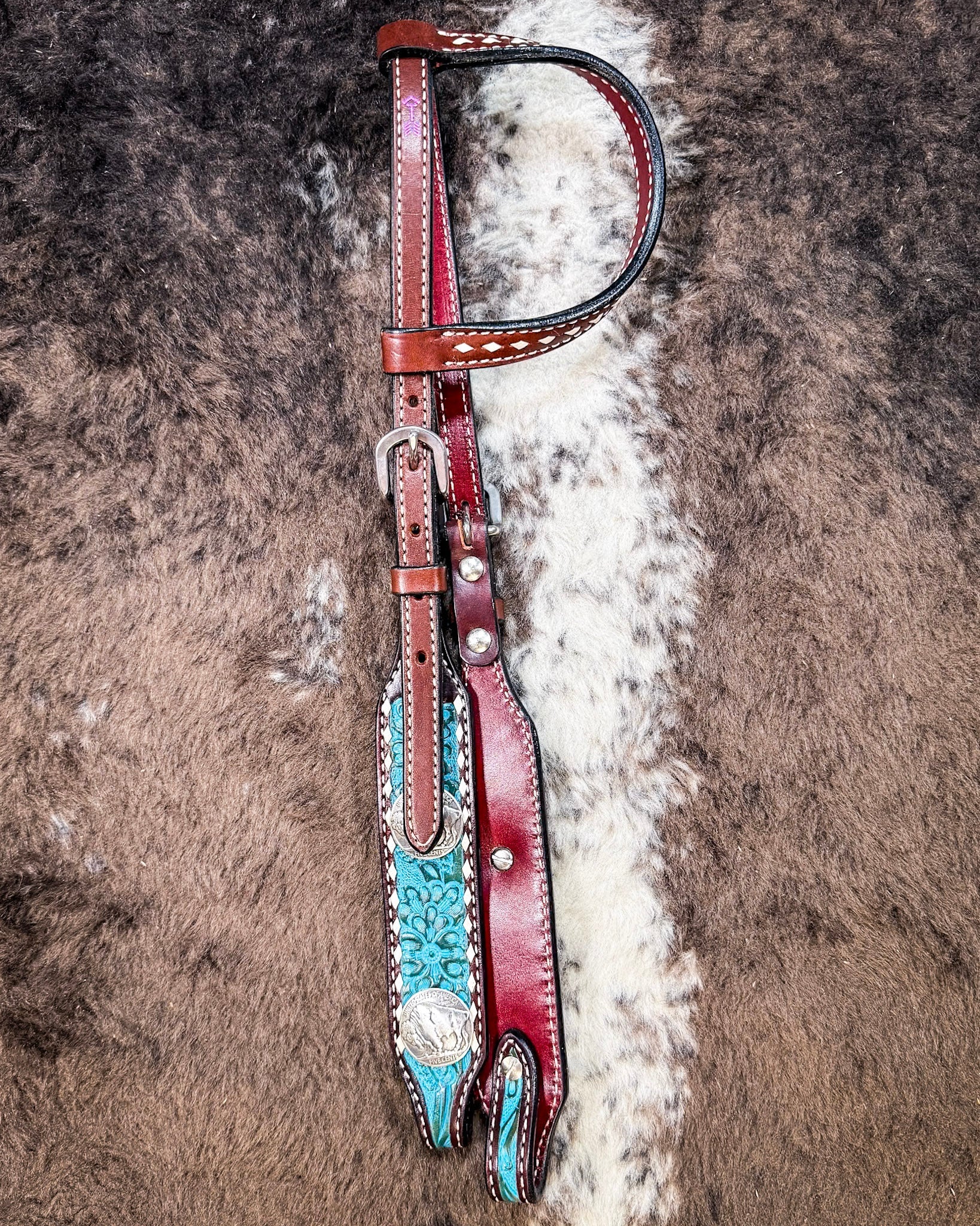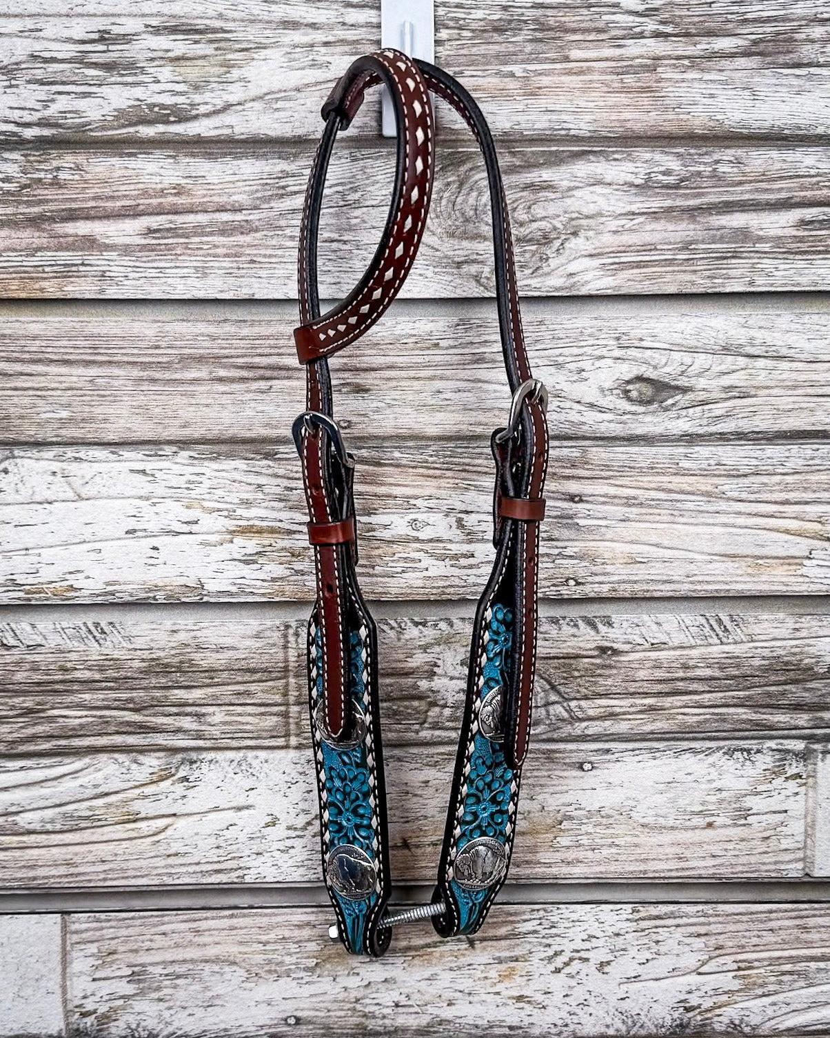 The star of the show? That turquoise wash. It brings a bold pop of color without overdoing it—layered with texture, movement, and just the right amount of contrast against rich, dark oil leather. It’s the kind of color that looks good in any light, whether you're under arena lights or out in the open pasture.