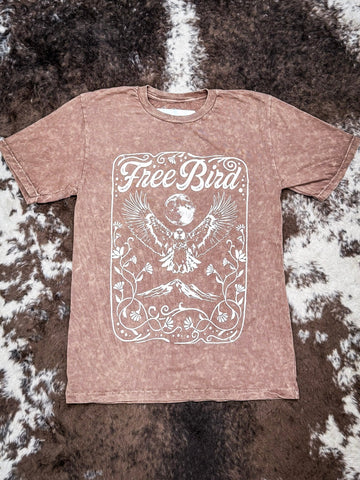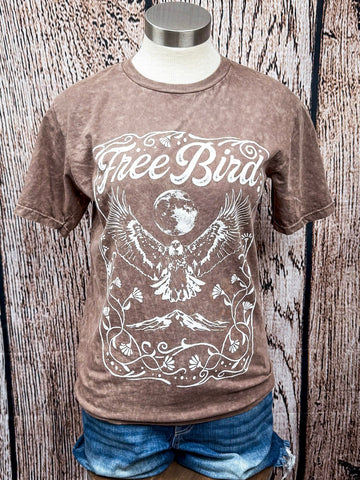 Let your style fly free with the Free Bird Graphic Tee—a vintage-inspired design for the wild at heart. Washed in a soft, earthy brown tone and featuring a soaring bird under a full moon, this tee captures that untamed, wanderin’ soul feeling with every thread.