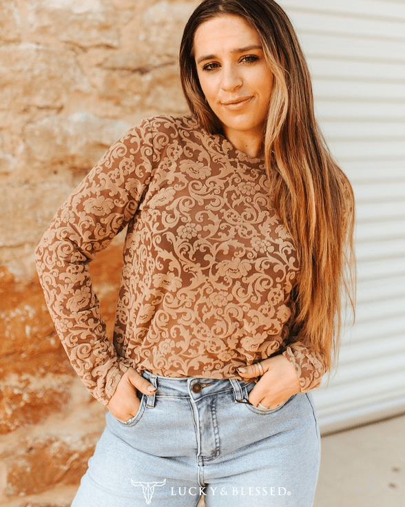 Timeless, versatile, and just the right kind of bold—the Burnout Mesh Top in Camel is one of those pieces that slips effortlessly into your fall wardrobe and instantly elevates everything around it. With rich tones and a vintage-inspired scrollwork pattern, this top feels like a fresh take on a classic—elegant but unfussy, feminine with just the right touch of edge.