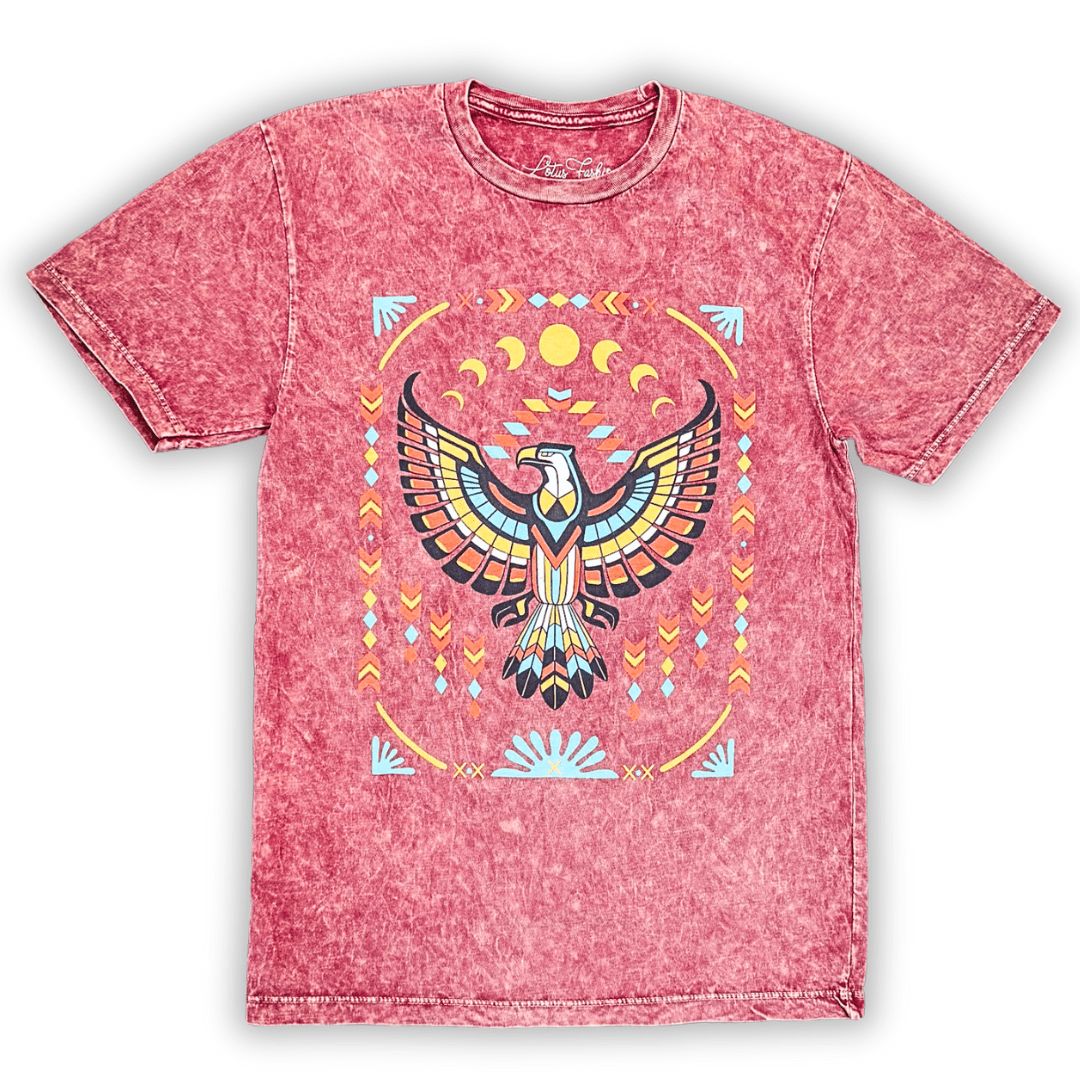 The southwestern eagle graphic adds a bold element that speaks to free spirits and adventure seekers. The intricate design showcases the beauty and power of the eagle, a symbol of strength, freedom, and the untamed spirit of the West. The detailed artwork stands out beautifully against the vintage wine background, making it an eye-catching piece that pairs well with everything from distressed denim to statement jackets. Whether you’re channeling a boho-western aesthetic or looking for an everyday tee with personality, this design makes an impact.