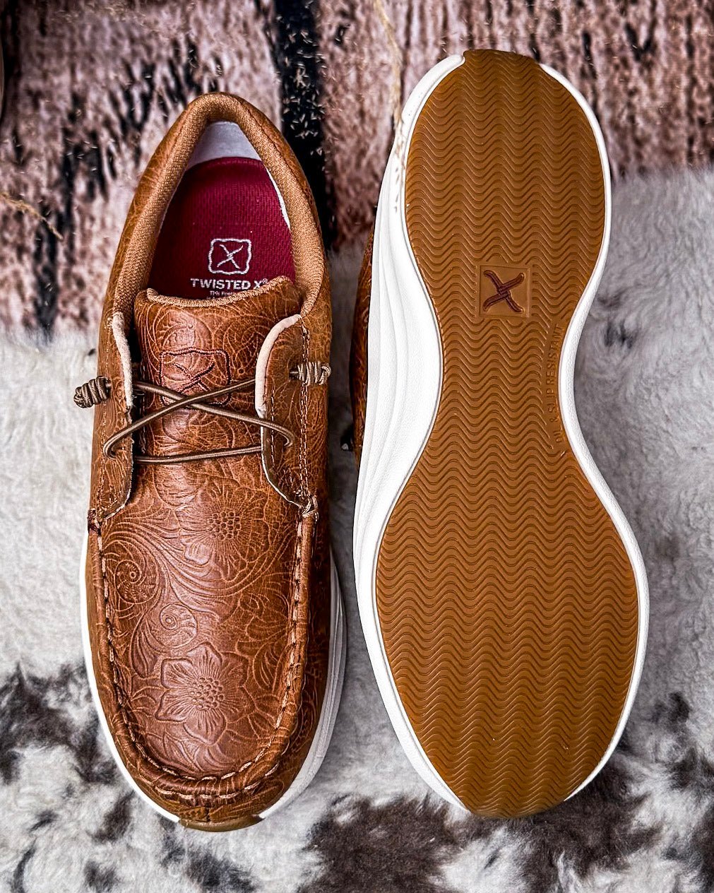 Warm, earthy, and effortlessly stylish, the Elowen Twisted X Feather X Slip-On Shoe in Spice is designed for comfort that doesn’t compromise on detail. With its tooled floral leather upper and rich spice tone, this slip-on adds a subtle western twist to your everyday look.