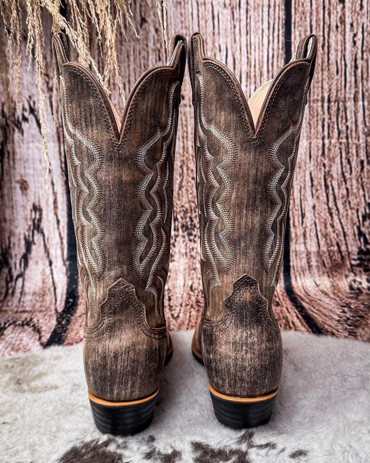 Made with a full leather vamp and 12" leather shaft, these boots bring that authentic western look with a lived-in feel right out of the box. The R toe keeps the shape sleek and flattering, while the leather lining with taped seams adds durability and comfort from the inside out.