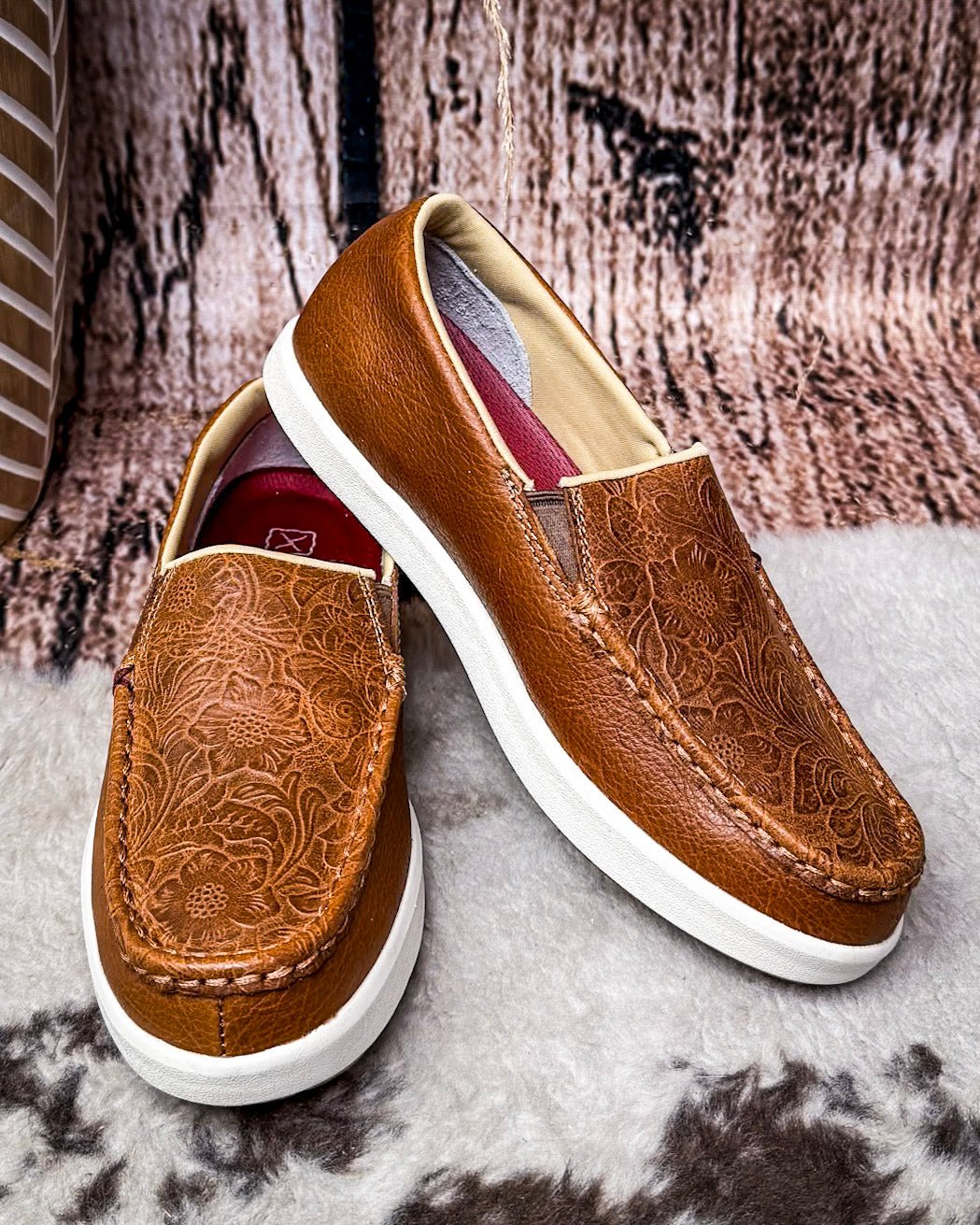 Lightweight, comfortable, and full of subtle detail, the Jess Slip-On UltraLite X in Cashew by Twisted X is an everyday essential with a touch of western flair. The soft leather upper features a embossed flower pattern on the vamp, giving it a unique look that feels feminine without being fussy.
