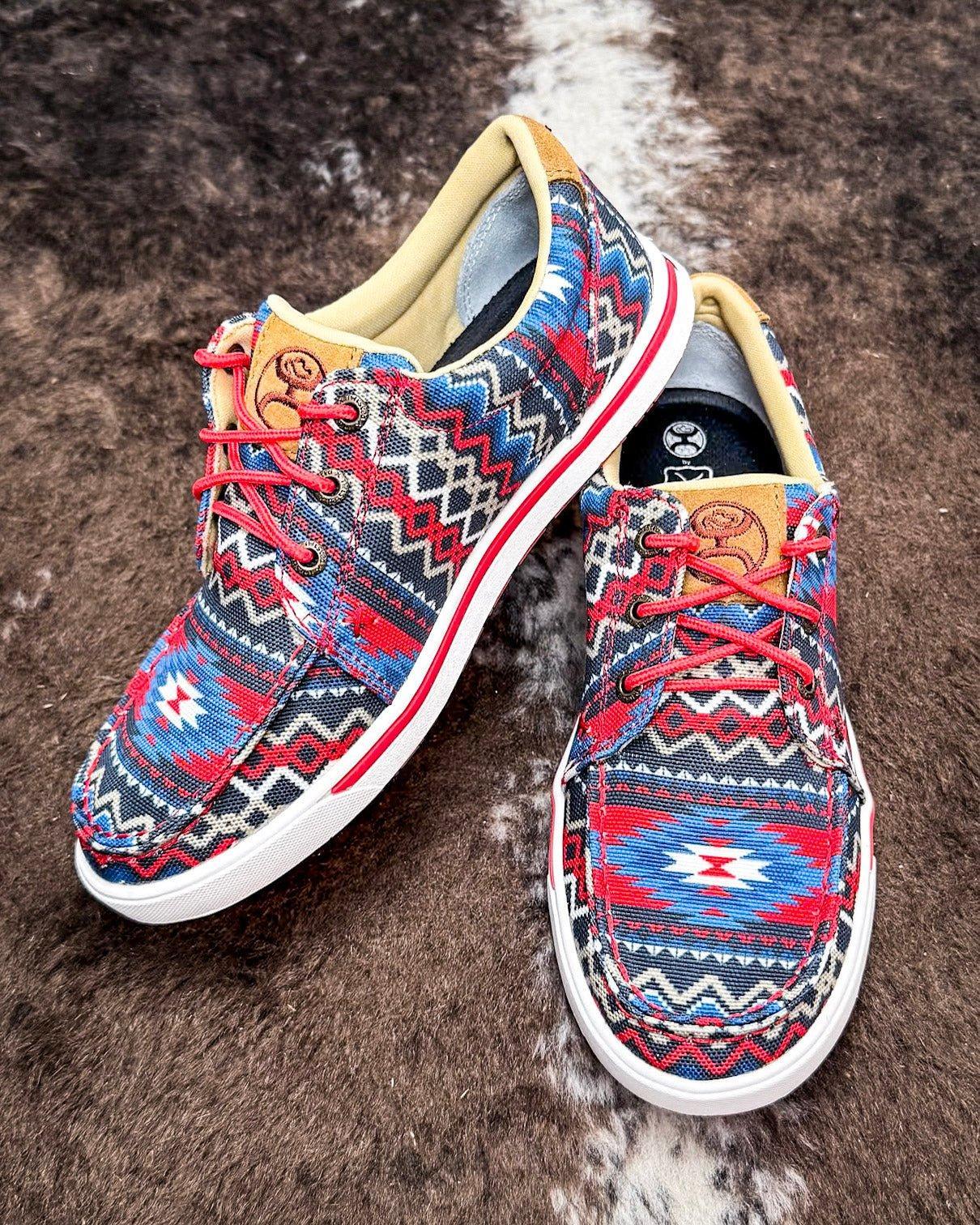 Let your style roam with the Liberty Loop—a bold, free-spirited take on everyday comfort. Wrapped in a vivid red Aztec-inspired pattern, this Hooey® Loper brings effortless energy to your step with playful color, lightweight design, and that signature blend of Twisted X® comfort and Hooey edge.