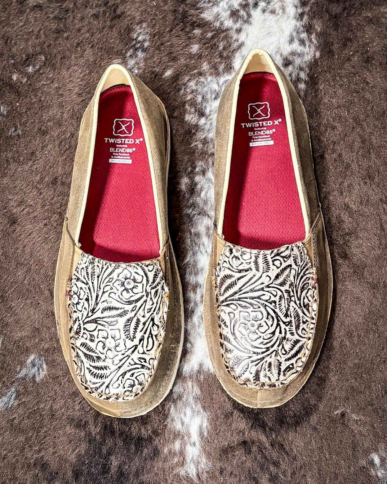 The Women's Casual Slip-On Loafer is handcrafted with materials that create a fun and unique fusion of textures, colors and patterns. One of the lightest options available with all the comfort you've come to expect from Twisted X®. This slim profile shoe combines a molded footbed on top of a full-length, dual-density EVA midsole and molded rubber outsole. The casual loafers will keep you looking good and keep your feet wrapped in lightweight comfort.