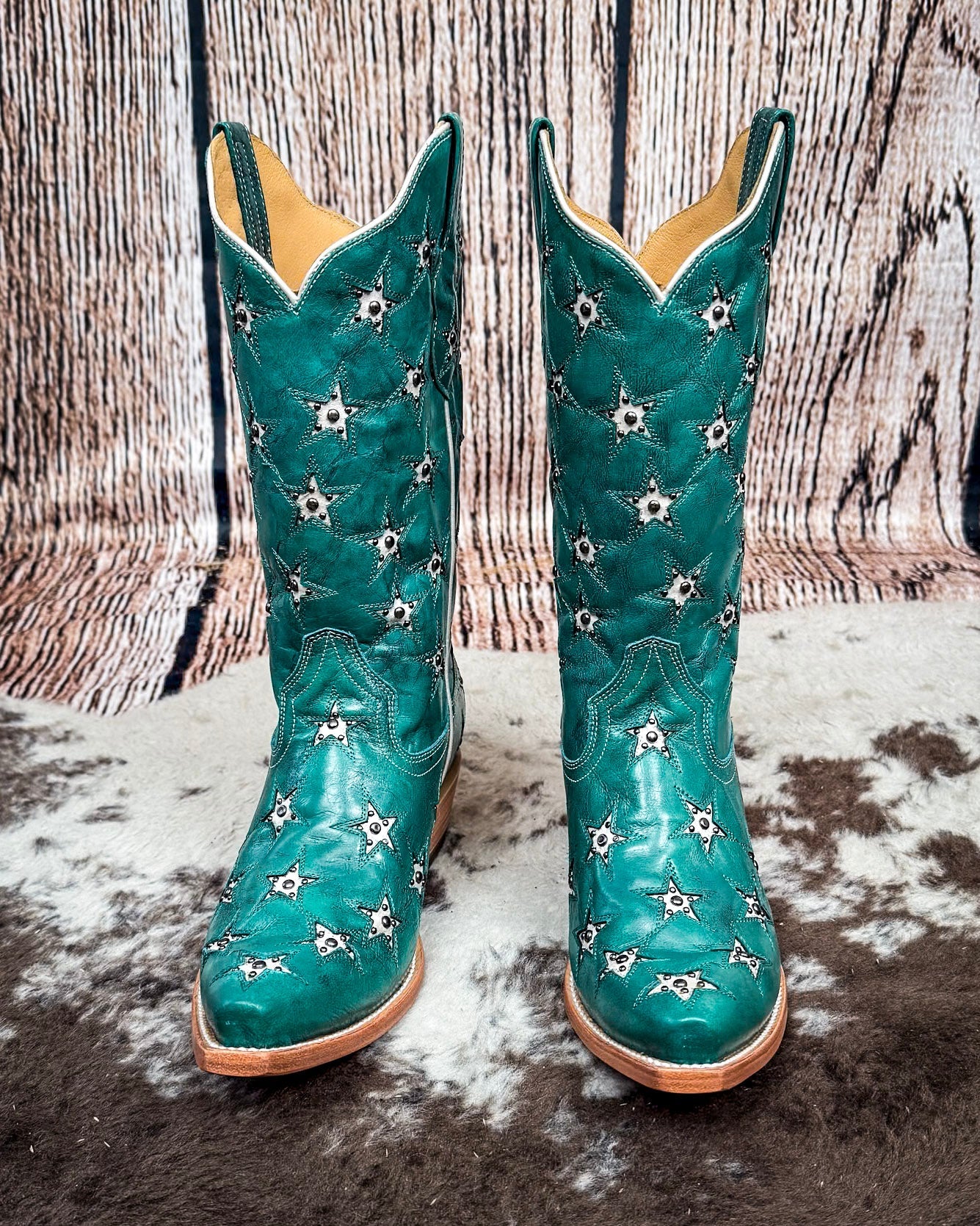 Marfa Black Star Leather Boots - Turquoise and Champagne | Bronco Western Supply Co.