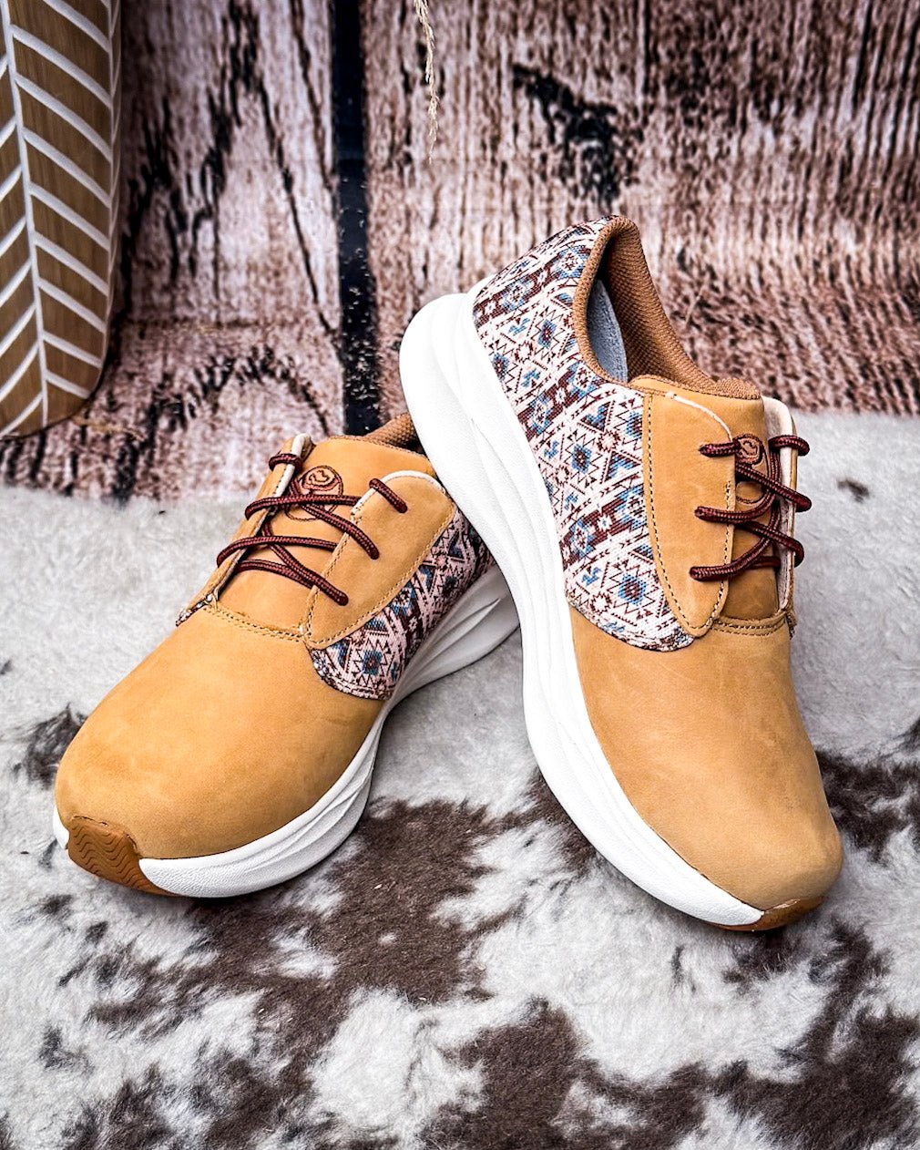 Lightweight comfort meets bold style in the Mira Twisted X Feather X Slip-On Shoe in Beeswax & Aztec Multi. With its warm leather upper and colorful Aztec-inspired fabric, this shoe is a perfect mix of everyday wearability and standout design.