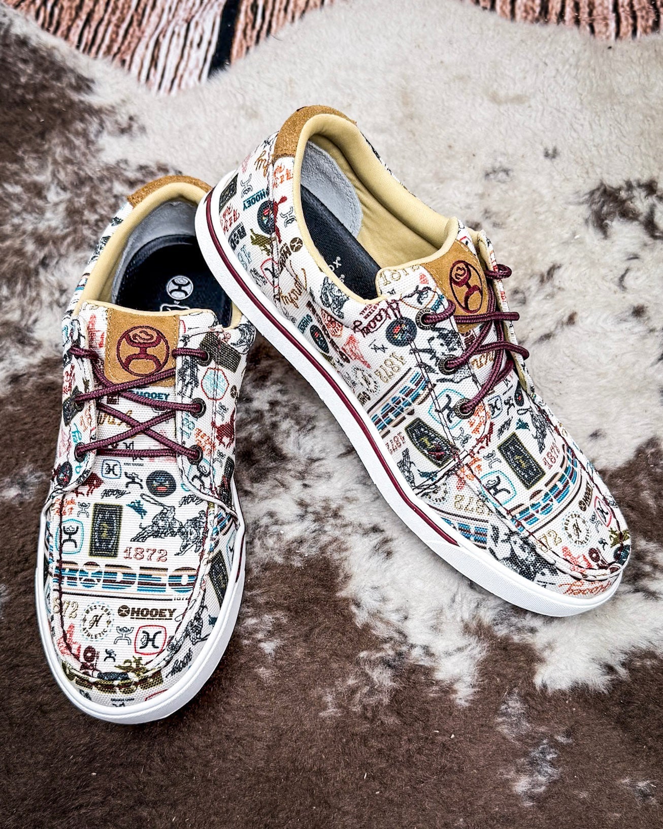 Meet the Rodeo Remix—a fresh spin on comfort, color, and laid-back western style. Bursting with vintage rodeo charm, bold graphics, and playful Hooey personality, this Loper is all about easygoing vibes with a little wild side. From the multicolor patch-style print to the rich toasted almond base, it’s a standout pair made for everyday wear.