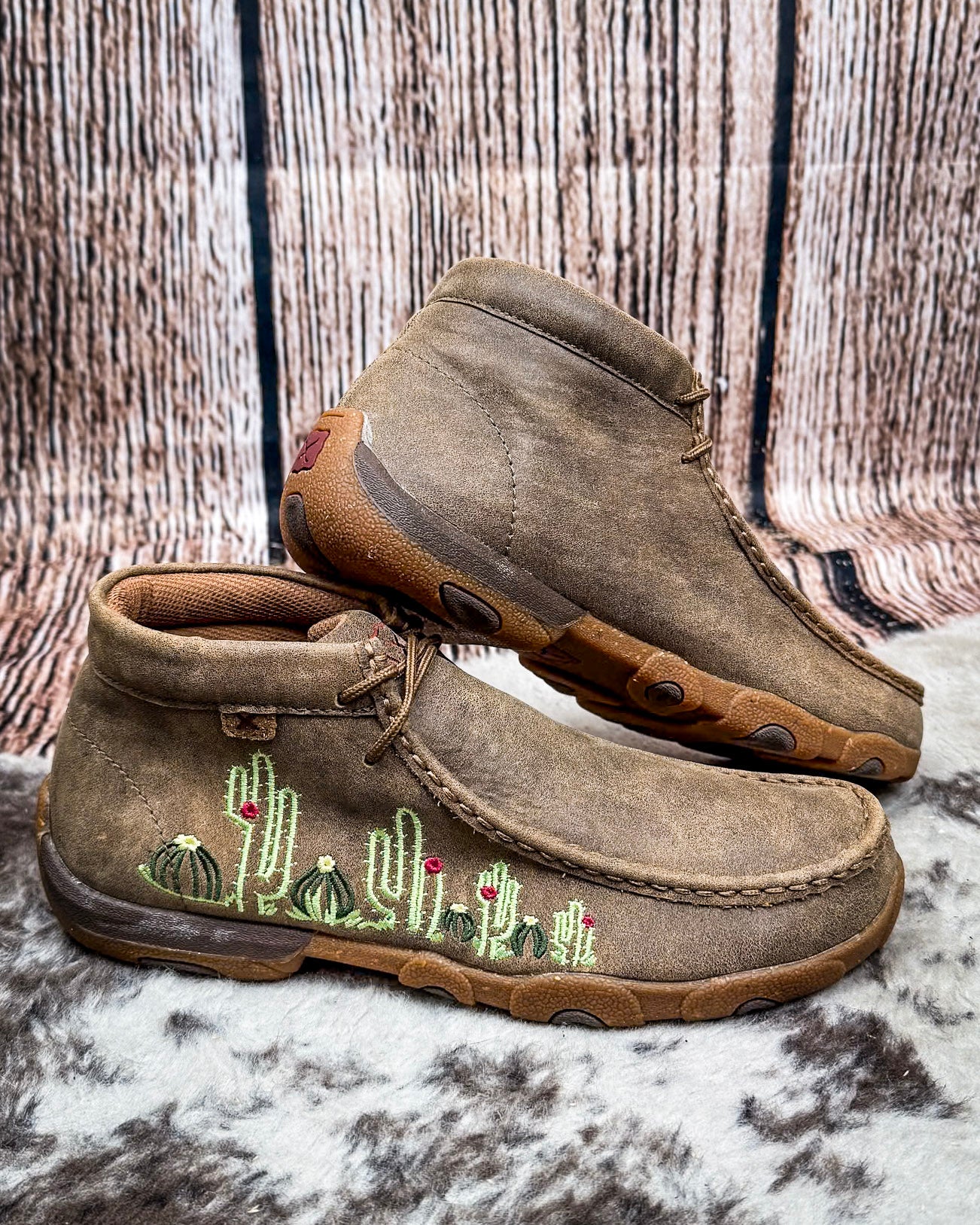 Rooted in comfort and bloomin’ with personality, the Saguara brings soft desert charm to a rugged everyday essential. This Twisted X original takes the classic chukka driving moc and adds a fresh, feminine twist with embroidered cactus details and a buttery full-grain bomber leather finish. It’s understated, beautiful, and made to move with you—whether you’re cruisin’ through town or takin’ the long way home.