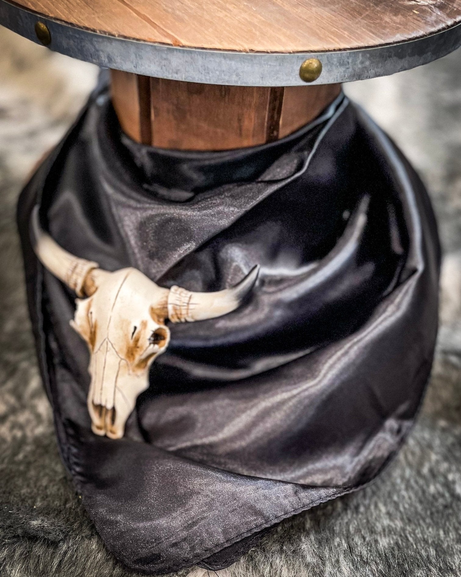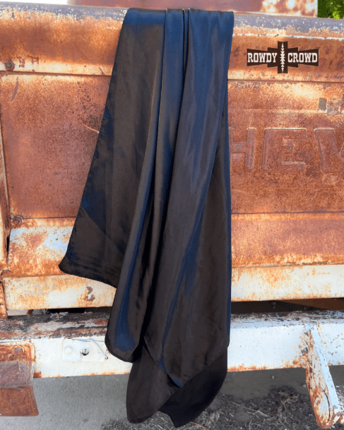 The Wynonna Wild Rag in Black is the definition of classic. Sleek, versatile, and always in style, this solid black scarf is a must-have for any Western wardrobe. Its silky-smooth finish gives it a refined edge, while the deep, inky color works effortlessly with everything you already own. From laid-back days to special occasions, this is the kind of accessory that makes every outfit look instantly pulled together.