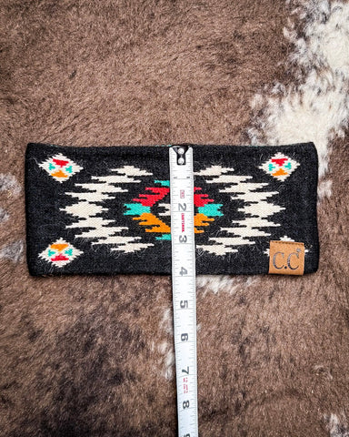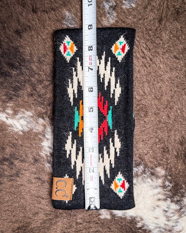 Keep your ears warm and your outfit bold with the Black Aztec Head Wrap by C.C.