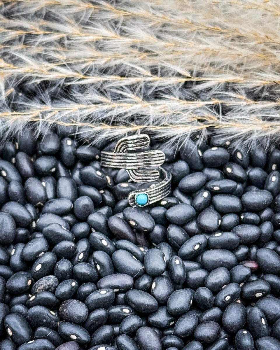 This ring layers well with other bands but also holds its own worn solo. The cactus shape keeps the look organic while the turquoise accent adds a soft pop of color that feels intentional, not trendy. It’s lightweight, comfortable, and easy to style year-round.