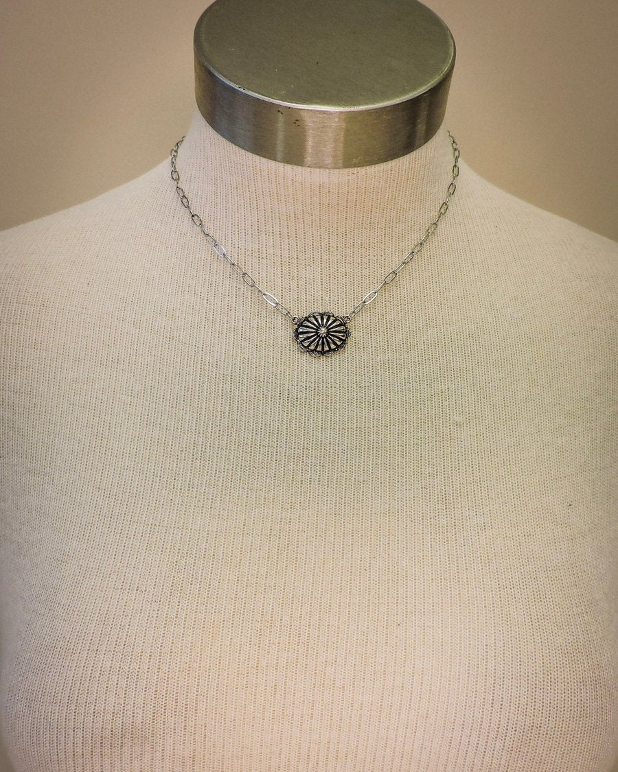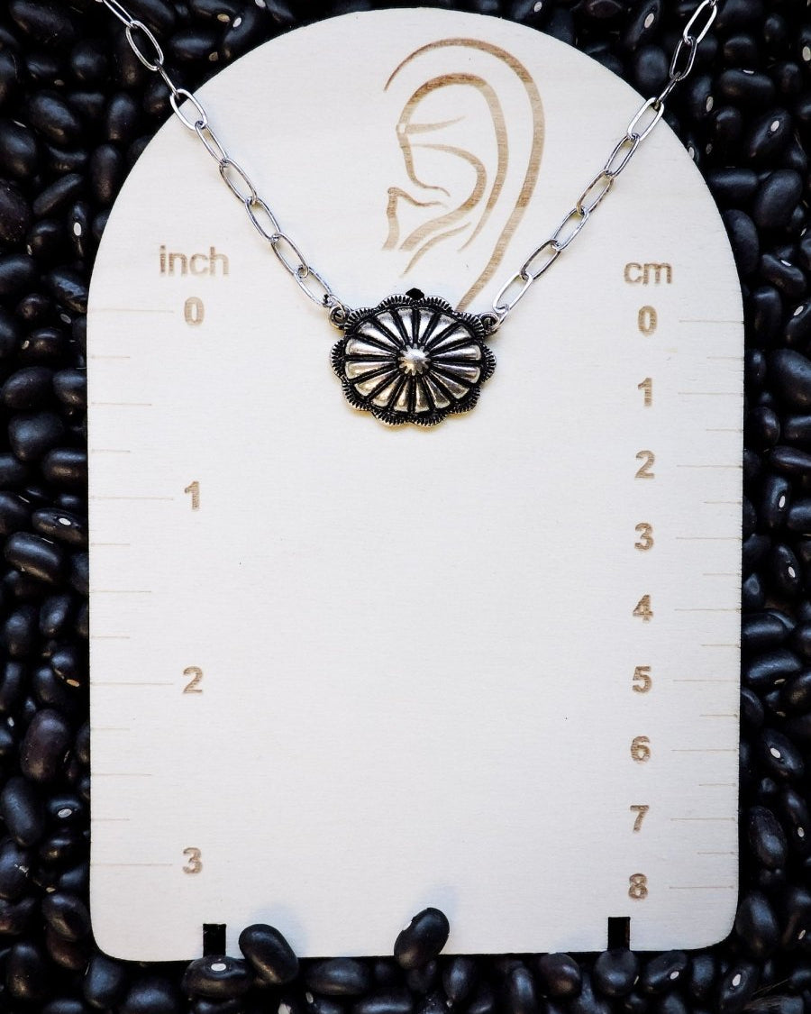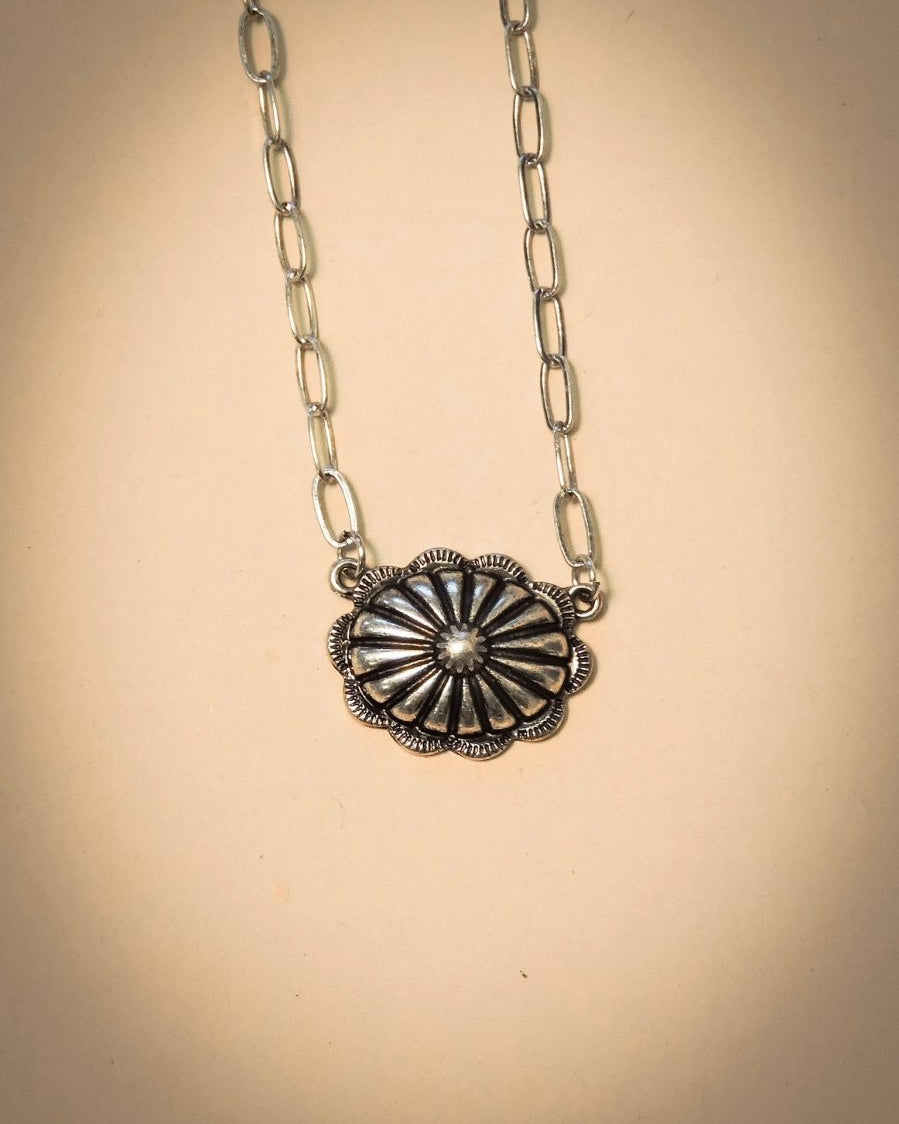 Whether you're dressing up for a night out or adding flair to your casual look, the Western Concho Pendant Necklace is a versatile accessory that celebrates the rugged beauty of the frontier. Embrace your adventurous spirit and let this timeless piece be a symbol of your love for western charm!