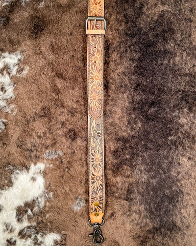 Adding to its charm, the tote features playful fringe details on the front, which give it dynamic movement and a touch of free-spirited flair. The fringes catch the eye and embody the rugged yet stylish essence of the Western aesthetic. The adjustable leather strap, also hand-tooled, is not just a practical feature but a continuation of the bag’s beautiful design. It allows you to wear the tote comfortably over your shoulder or adjust the length to suit your preference, ensuring both versatility and ease of use.