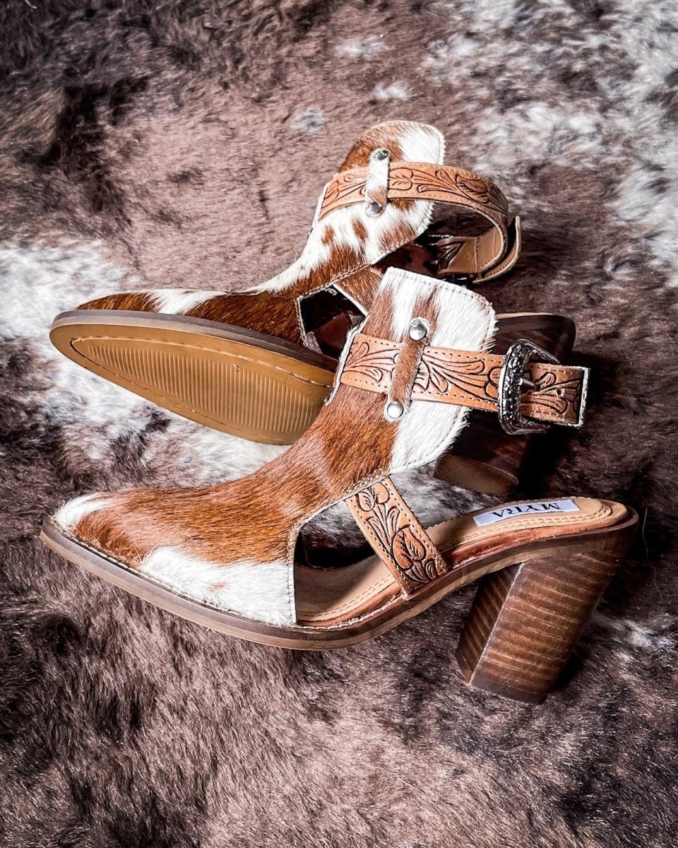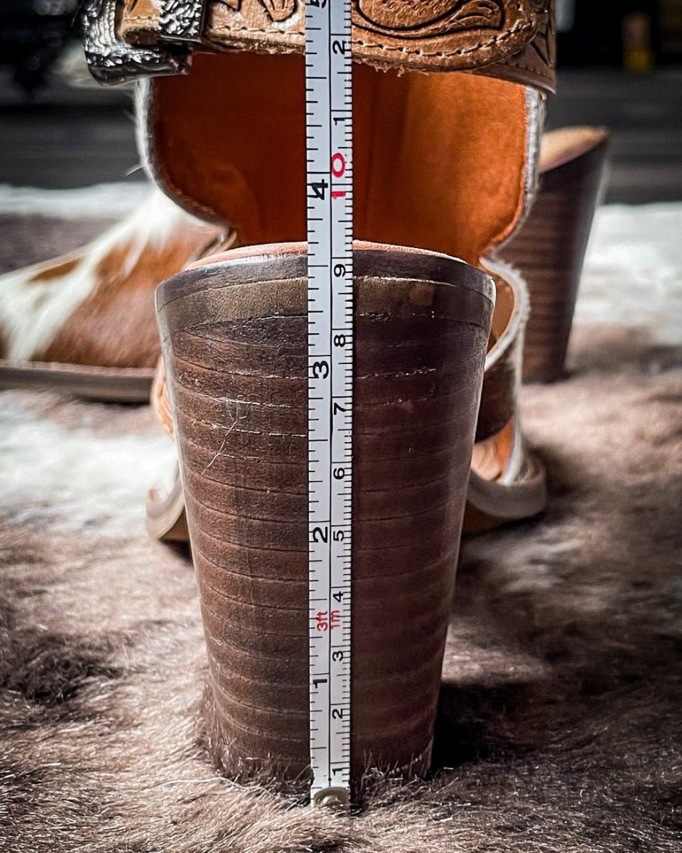 If you’re looking for something a little bold but still easy to style, the Cora Jo Heeled Bootie by Myra Bag is such a fun one to slip into. With its mix of rich hair-on hide and beautifully tooled leather straps, it brings that perfect balance of western detail and modern edge.