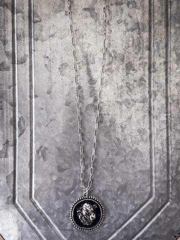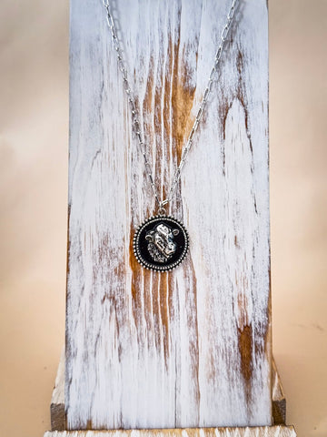 Crafted with high-quality materials, this necklace is designed for durability and long-lasting style. The Silver/Black colorway enhances the pendant’s intricate detailing, creating a bold contrast that highlights the Western-inspired design. The antique silver-tone frame surrounds the deep black background, making the cow head motif stand out with striking clarity. Whether you're dressing up or keeping it casual, this color combination adds effortless sophistication to your look.