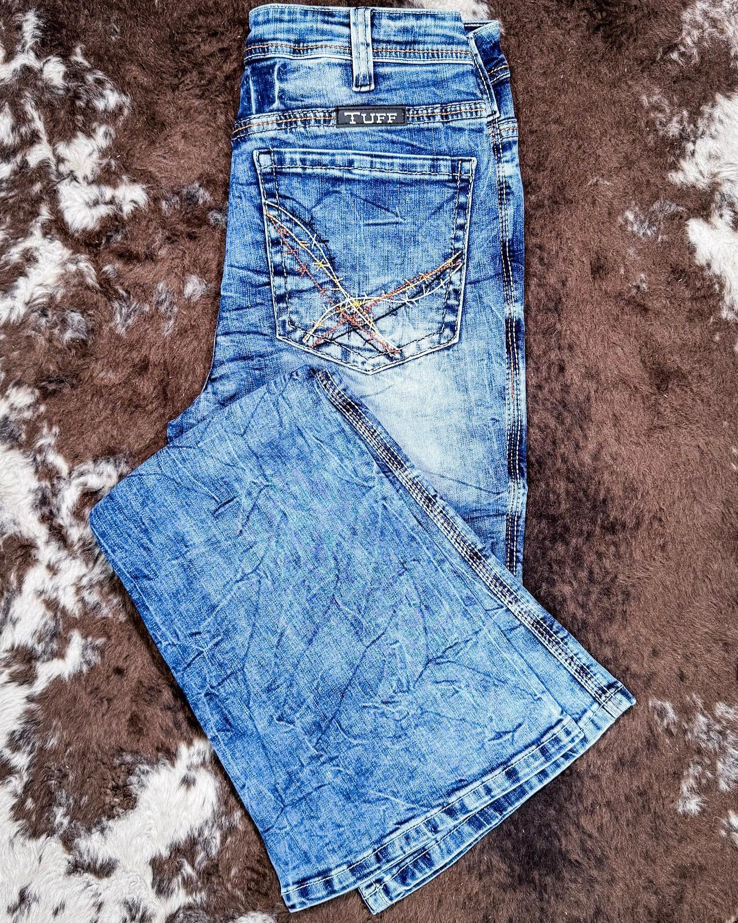 Fit Tip: Every Cowgirl Tuff style fits a little different—and that’s exactly why we include a specific size chart for each style right here on the page. Be sure to check it out before you add to cart so you can snag the perfect fit the first time.If you’re looking for a pair of jeans that are as bold as you are, the Blazin’ High Waist Relaxed Fit Trousers are about to become your new favorite. With their wild crinkled acid wash, these jeans bring a whole new level of edge to your wardrobe. Designed for comfort and style, they feature the signature Tuff Flex medium-stretch denim, giving you just the right amount of flexibility while still holding that structured, high-waisted fit you love. Whether you're heading out for a night on the town or spending the day in the saddle, these trousers are built to keep up.