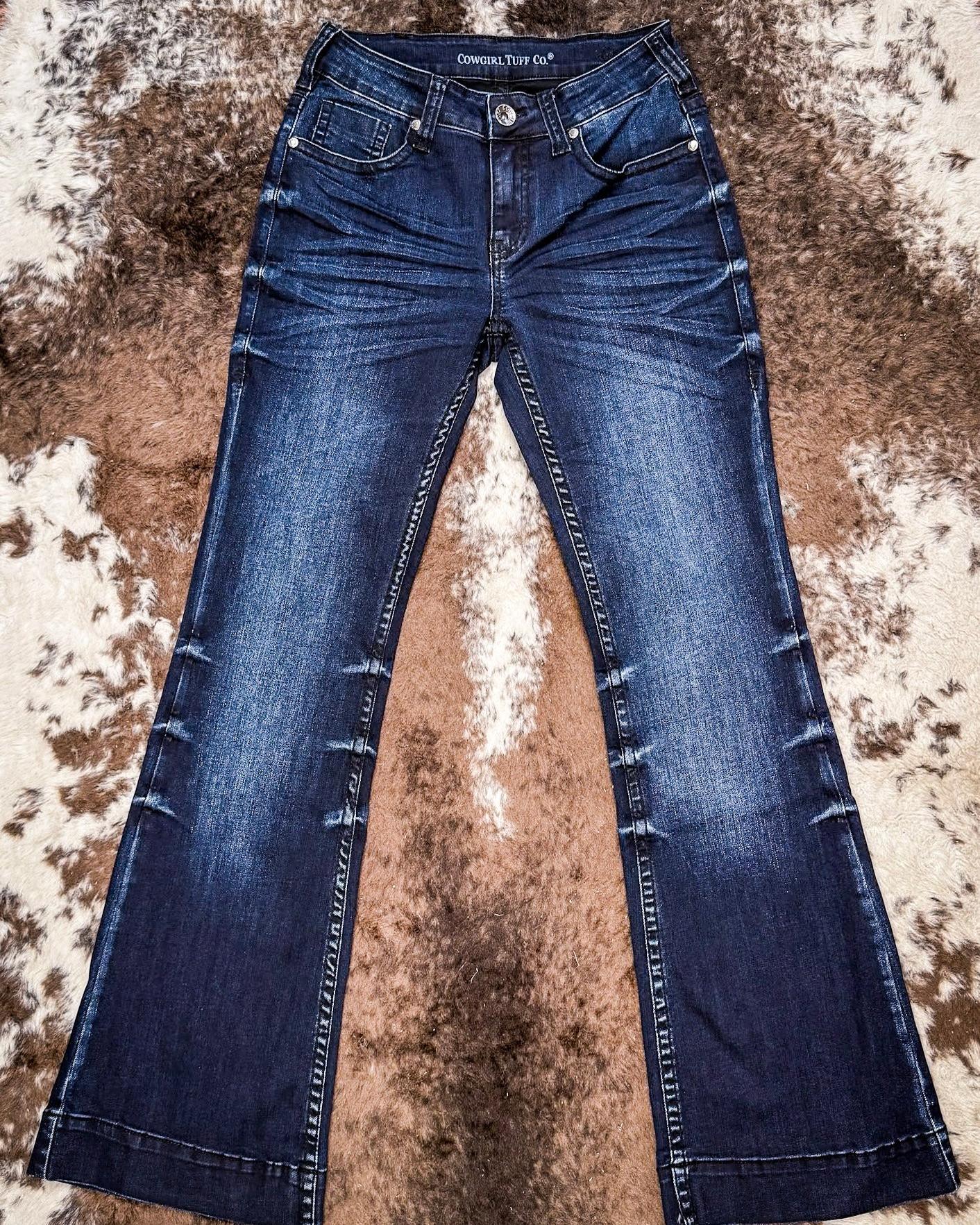 Some jeans just fit right—and these? They check every box. The Cowgirl Tuff Deep Sapphires Trouser Jeans were made for comfort, confidence, and all-day style. With a flattering silhouette that feels as good as it looks, this pair is proof that a great fit can truly make your day.