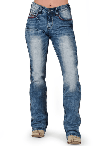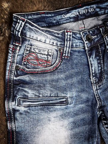 Say hello to the Red Roan Bootcut Jeans, a bold new standout with western edge and serious style. From the eye-catching acid wash to the triple-color stitching, these jeans are here to make a statementβand trust us, they will turn heads.