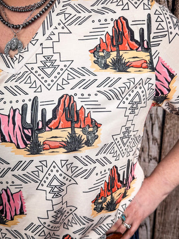 Dune Desert Print Short Sleeve V-Neck Top by Lucky & Blessed