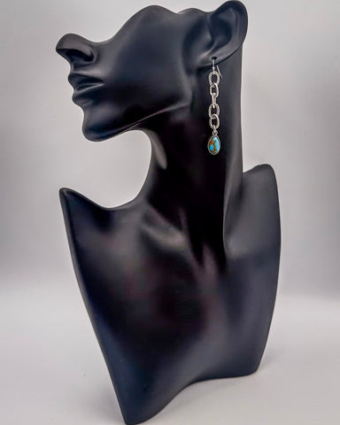 Chic, bold, and full of effortless movement — the Linked In Chain Dangle Earrings are made to stand out. Designed with a series of textured silver links that catch the light beautifully, each earring finishes with a teardrop turquoise-style accent for that perfect pop of color.