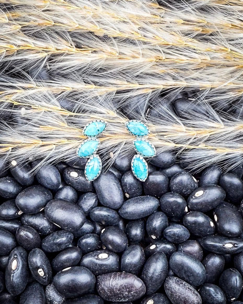 The Lyra Genuine Turquoise Earrings are delicate, refined, and full of character. Crafted from 925 sterling silver and set with three marquise-shaped turquoise stones, these earrings bring an effortless balance of elegance and western-inspired style.