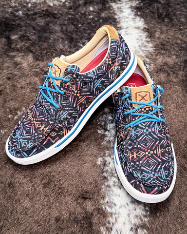 Say hello to your new everyday favorite—the Neon Mesa. These Twisted X Kicks bring bold energy and laid-back comfort together in one head-turning pair. With that bright Blue Aztec pattern and pops of electric color, they’re built for folks who don’t shy away from standing out. Whether you’re out running errands, headed to brunch, or just keeping it casual, these kicks bring a playful edge to your go-to look.
